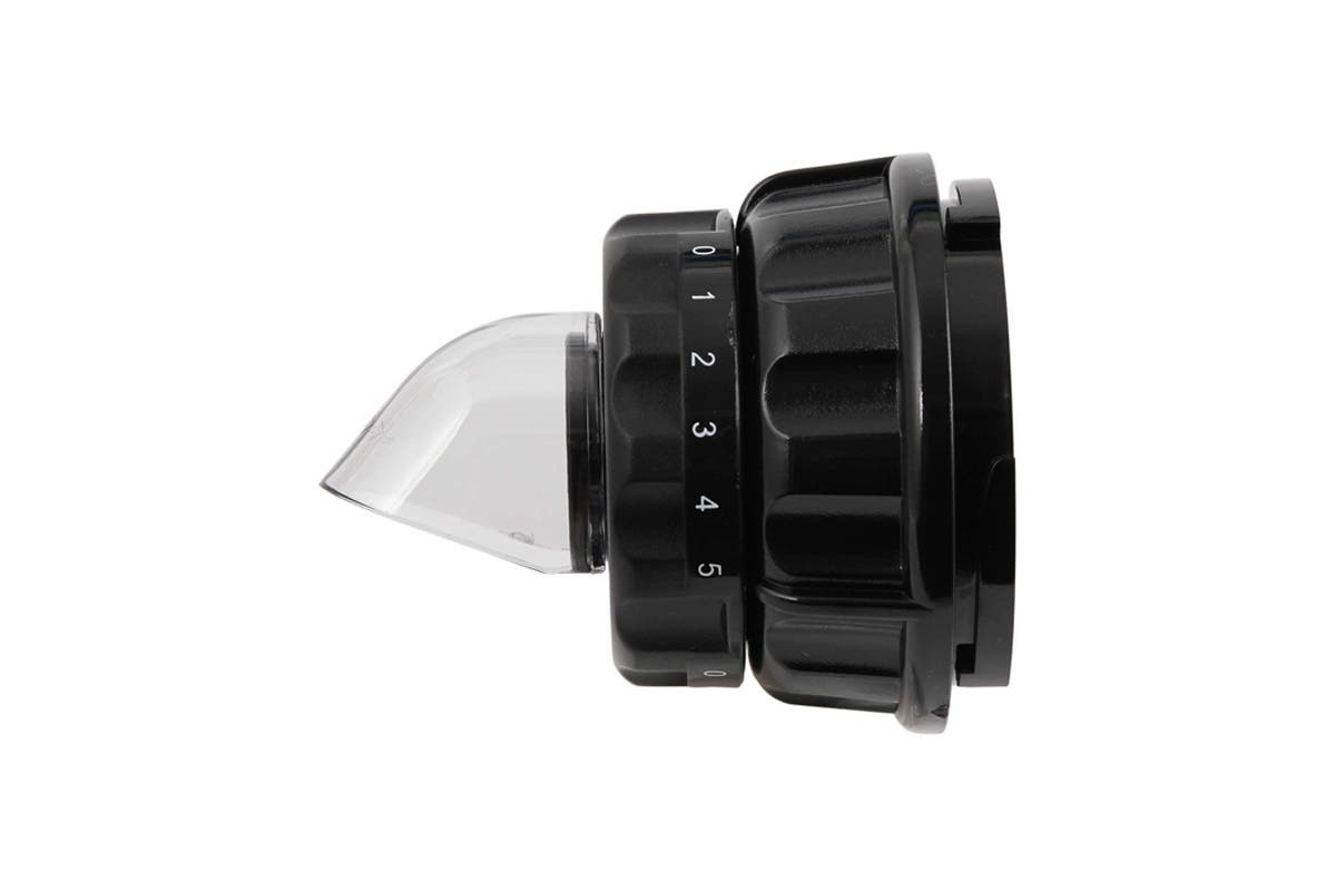 The BioChef Axis Compact Juicer comes with a pulp adjustment nozzle – an integral part of the effectiveness of the juicer. The pulp adjustment nozzle allows you to alter the pressure under which fruits and vegetables are squeezed, with 5 being the highest pressure and 0 being the least pressure. By adjusting this pressure, you can ensure you are extracting the maximum amount of juice from produce at any given time. It also means you have better results for softer, juicier fruits such as oranges or watermelon. With the setting on ‘0’ or ‘1’, you are allowing a freer flow of juice – resulting in less pulp and juice left in the drum and better efficiency.