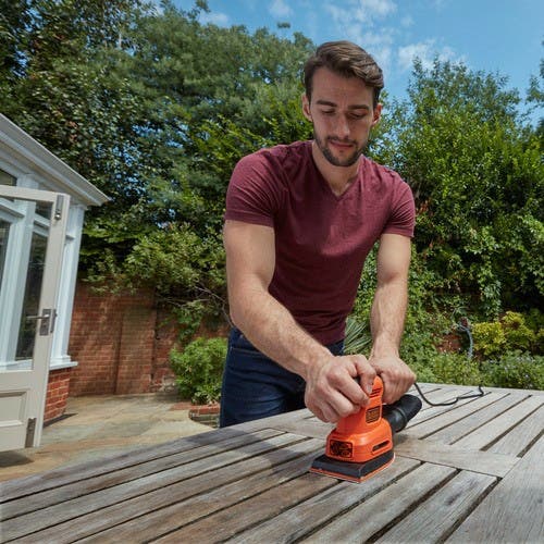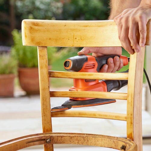 The Black & Decker 170W Multi-Sander lets you sand intricate areas in Detail Sander mode and get into the tightest spots with the finger attachment. Switch to orbital sanding mode for a swirl-free finish on larger areas and finishing mode to smooth and remove paint from skirting boards, shelves and more.