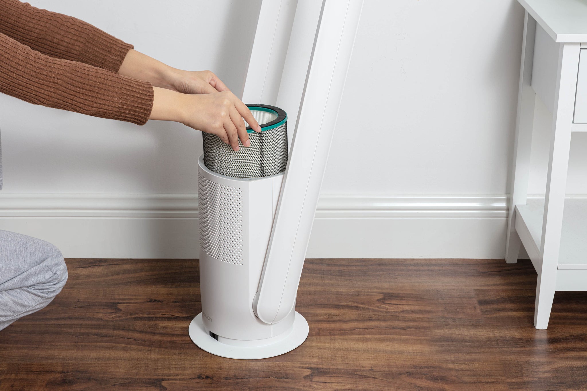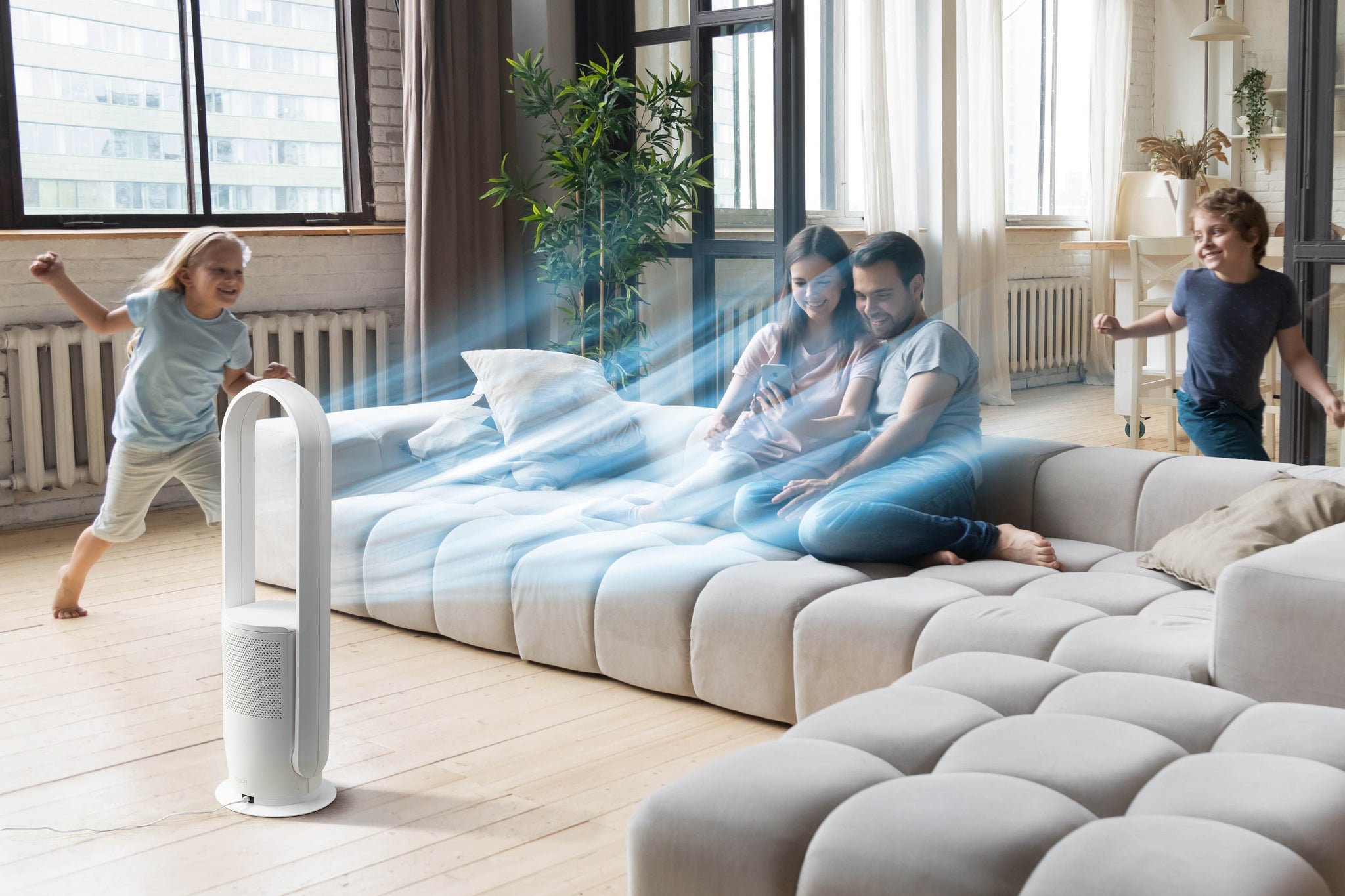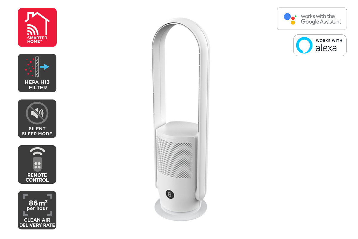 Breathe fresh air at home and enjoy a cool breeze with a two in one device that can be controlled with an app, Google Home or Amazon Alexa and features an easy to clean bladeless design.