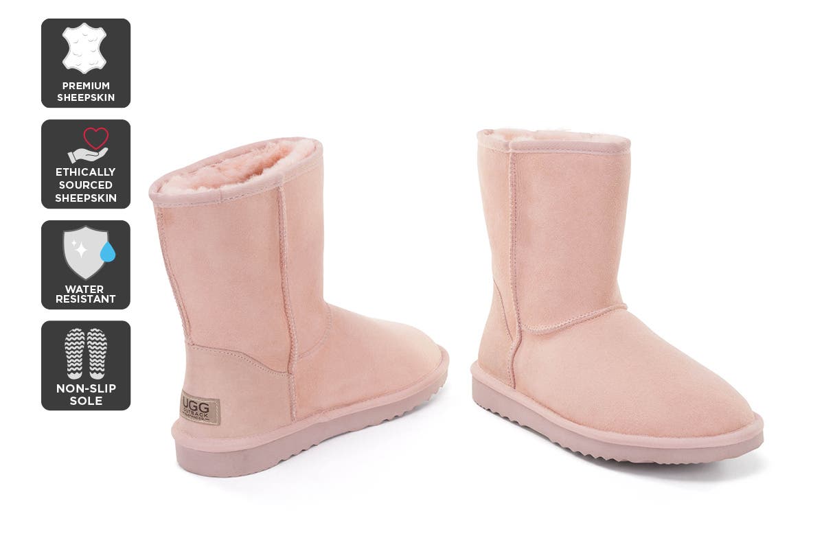 NNEKGE Boots Short Classic Premium Double Face Sheepskin (Pink Size 10M 11W US)