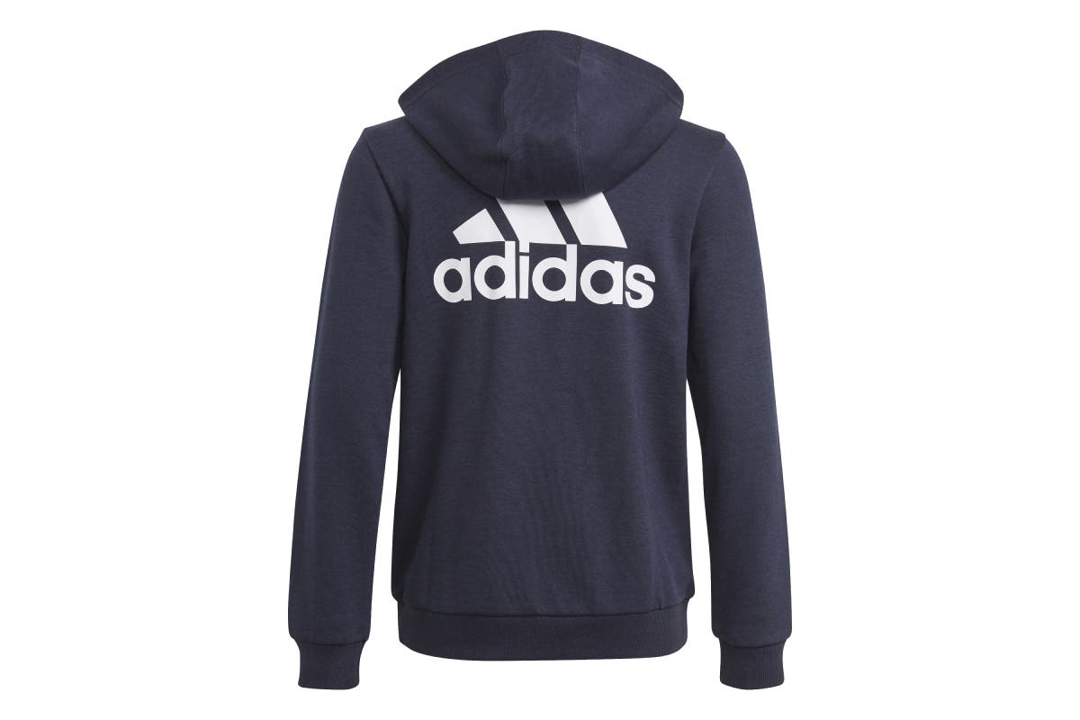 The Adidas Boys’ Big Logo Full Zip Hoodie can easily slip into any situation. Pull it on any time you need to inject a little warmth into your day.