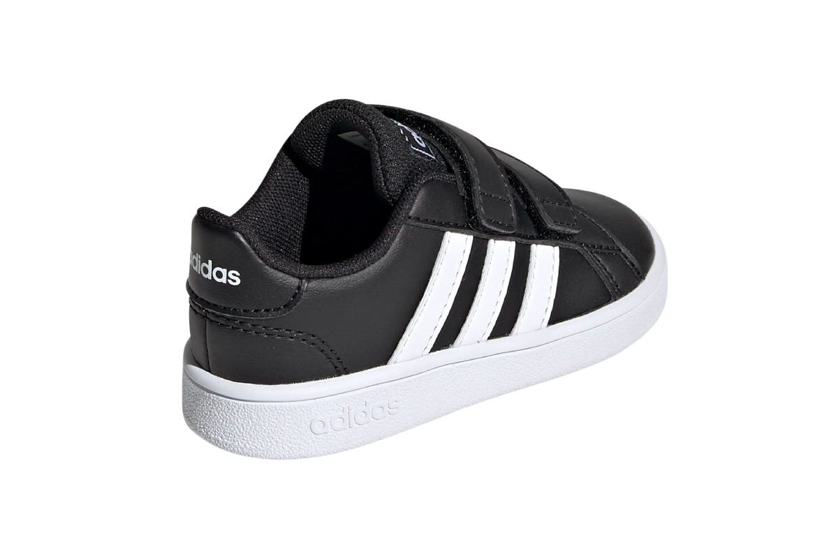 Adidas Boys Grand Court I Shoes are built in modern comfort with lightweight cushioning. The strap closure on the leather-like upper makes them easy to slide on and off.