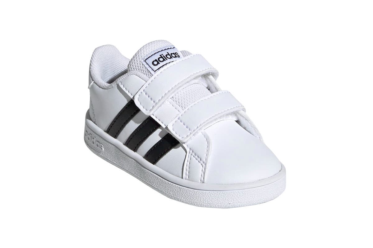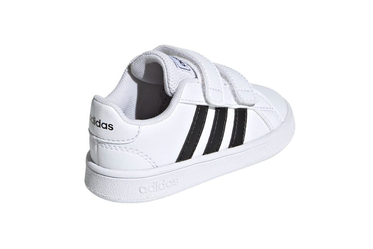 Adidas Boys Grand Court I Shoes are built in modern comfort with lightweight cushioning. The strap closure on the leather-like upper makes them easy to slide on and off.