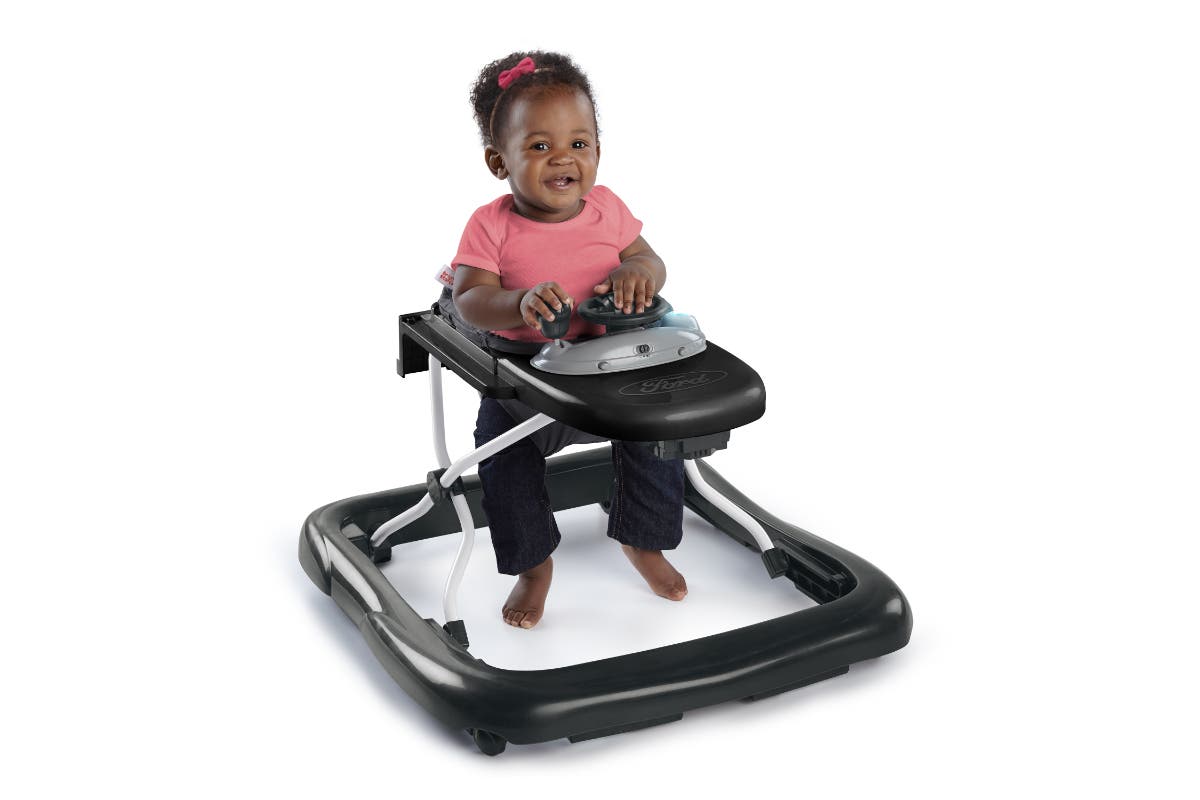 The Bright Starts Ways To Play 4-in-1 Walker is a baby walker car designed to support multiple levels of play. Two children can play at the same time. The walker baby mode offers additional stability and support for pre-walkers. You can also use it as a push walker inside your home for more experienced walkers. This rugged baby activity walker will spark your child’s imagination thanks to the authentic Ford truck sounds, lights, gear shifter, steering wheel and its rugged look.
