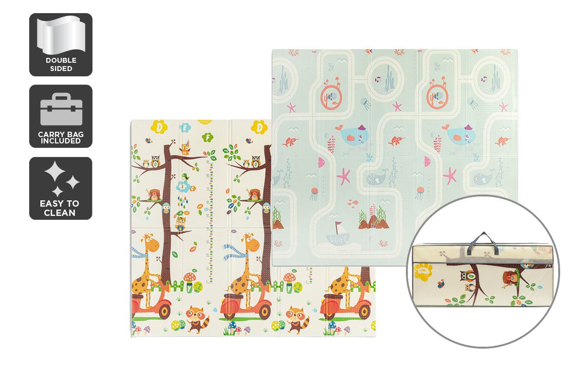 Ideal for use at home or on your travels, this baby play mat folds up to a compact size and comes with a carry bag which allows you to provide a comfortable space for your baby wherever you are.