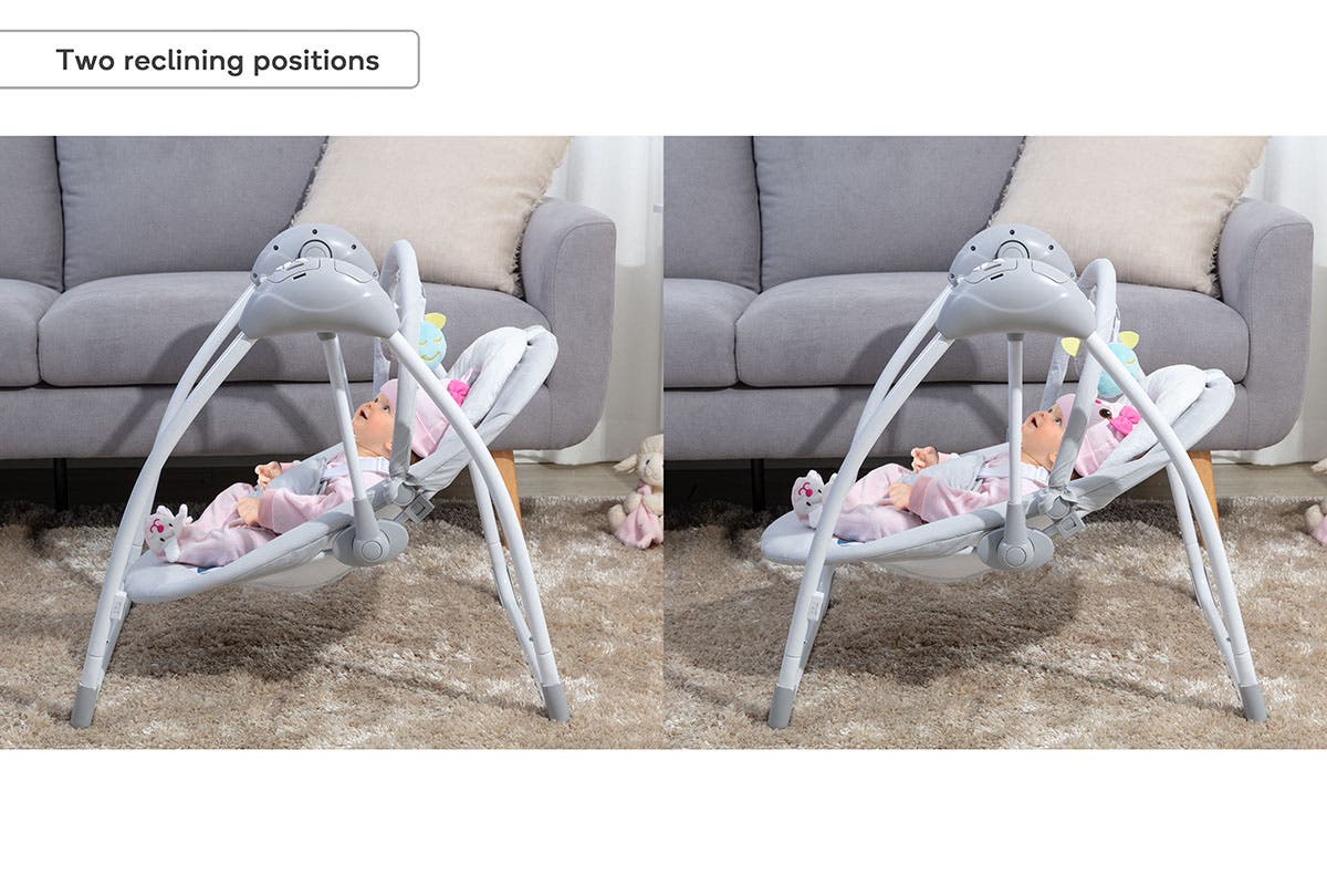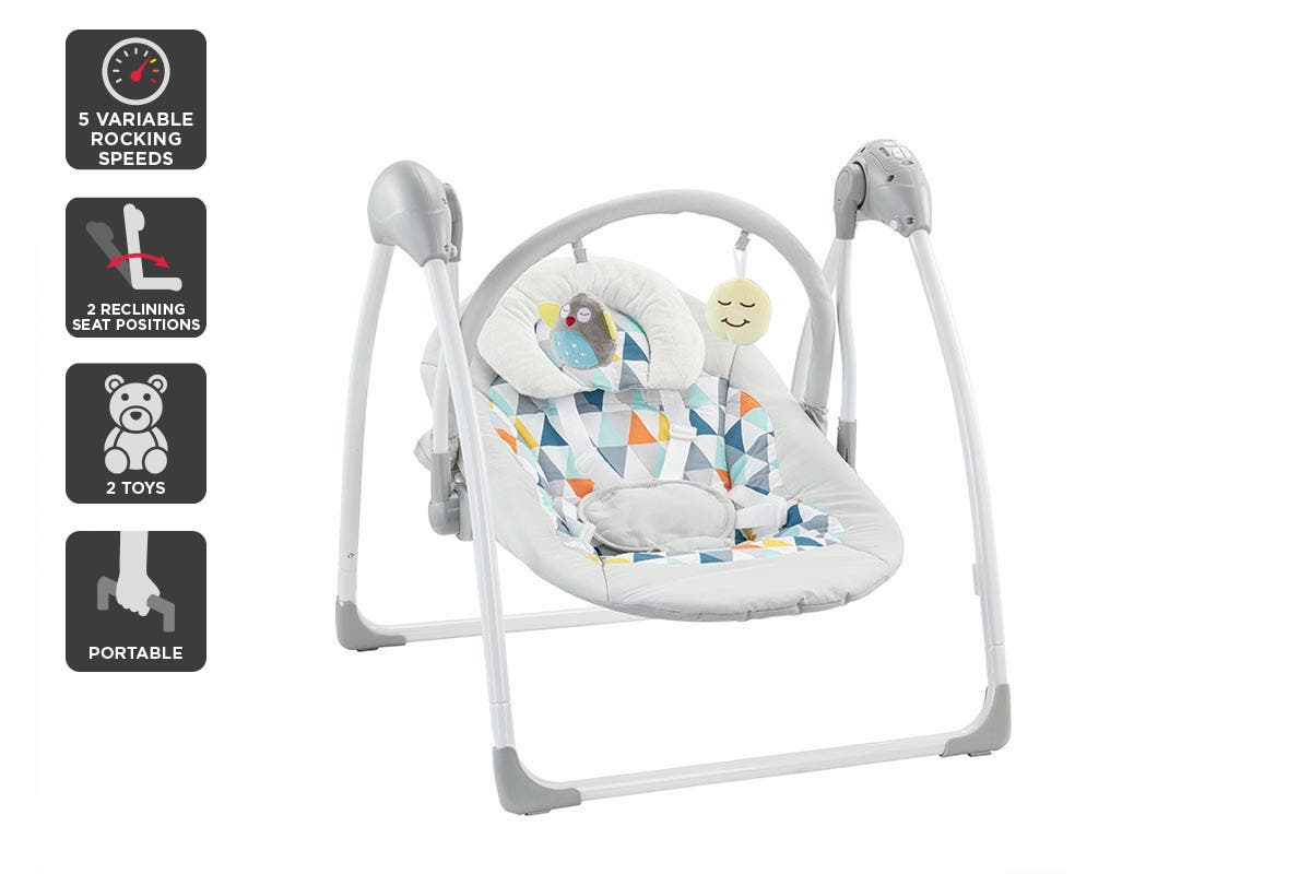 Cradle, soothe and comfort your baby with ease using this portable swing that lets them lie back and relax with variable rocking speeds and soothing sounds that lull them to serenity.