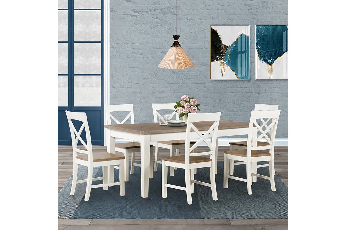 Bring the charms of a country French chateau to your home with a gorgeous dining table made from solid pine wood.