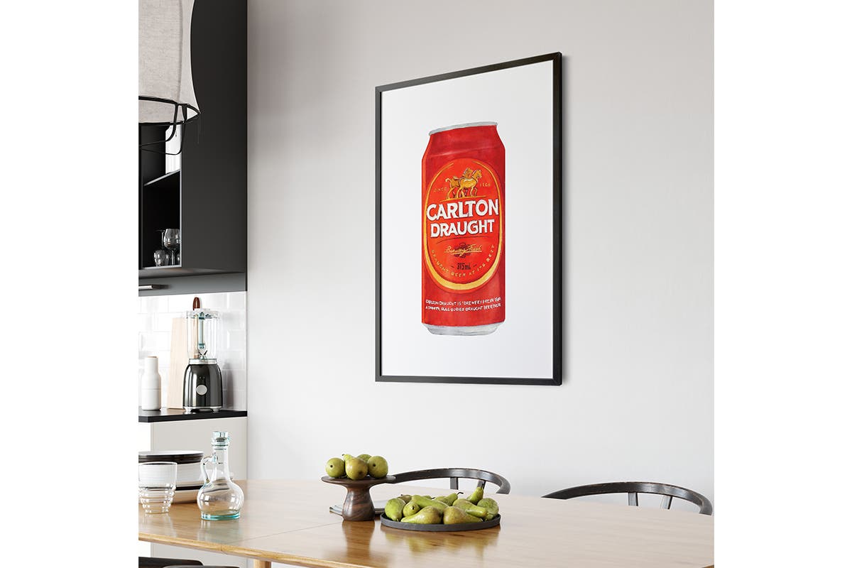 The Carlton Draught Tinnie Painting Man Cave Gift Art A1 Black Frame makes your space elegant, attractive and authentic. This ready to hang, quality framework is made from pine wood and flat-edged.