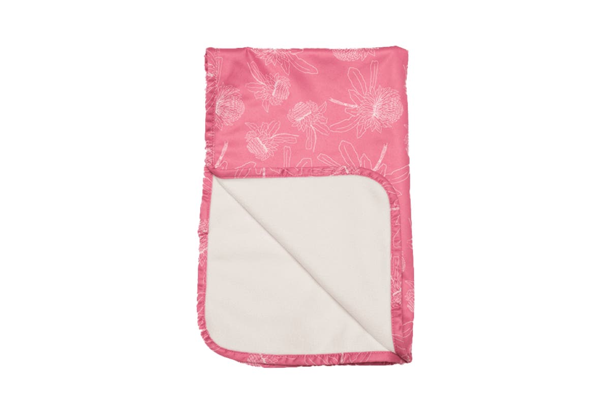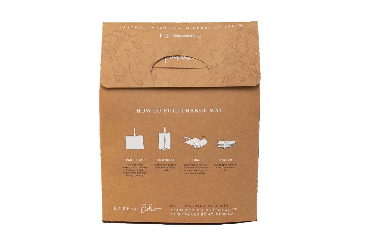 The Bare & Boho Changemat & Medium Wetbag Waratah includes change mat and medium wet bag. The change mat’s one side feature water resistant lined polyester that’s easy to wipe clean. The other side is made from soft quilted bamboo cotton velvet. They can be easily rolled up to fit in your nappy bag, featuring a handy strap to enclose the mat when rolled up. The included medium wet bag is made from water resistant lined polyester and includes a zip closure and wrist strap for travel or to hang on your pram.