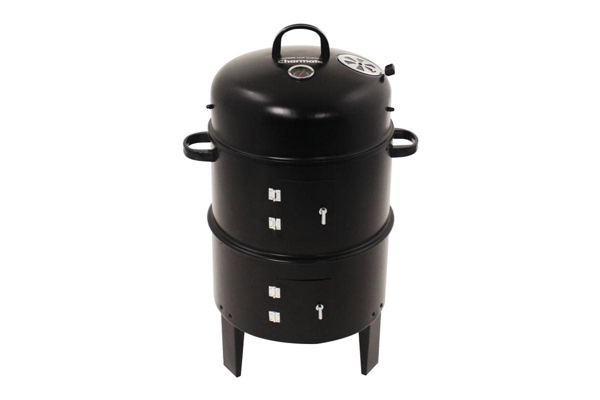 The Charmate Lawson Junior Charcoal Smoker & BBQ features durable high temperature powder coated construction with 2 large chrome plated cooking racks. Add wood chips or chunks directly on top of the hot charcoal or into the water bowl to add that special flavour you’re after. The water bowl adds moisture while cooking to ensure food doesn’t dry out. Also enjoy the added benefit of being able to use it as a charcoal grill when you don’t feel like smoking.