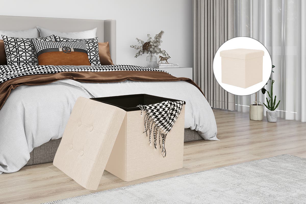 NNEKG Collapsible Storage Box (Small Beige Fabric)