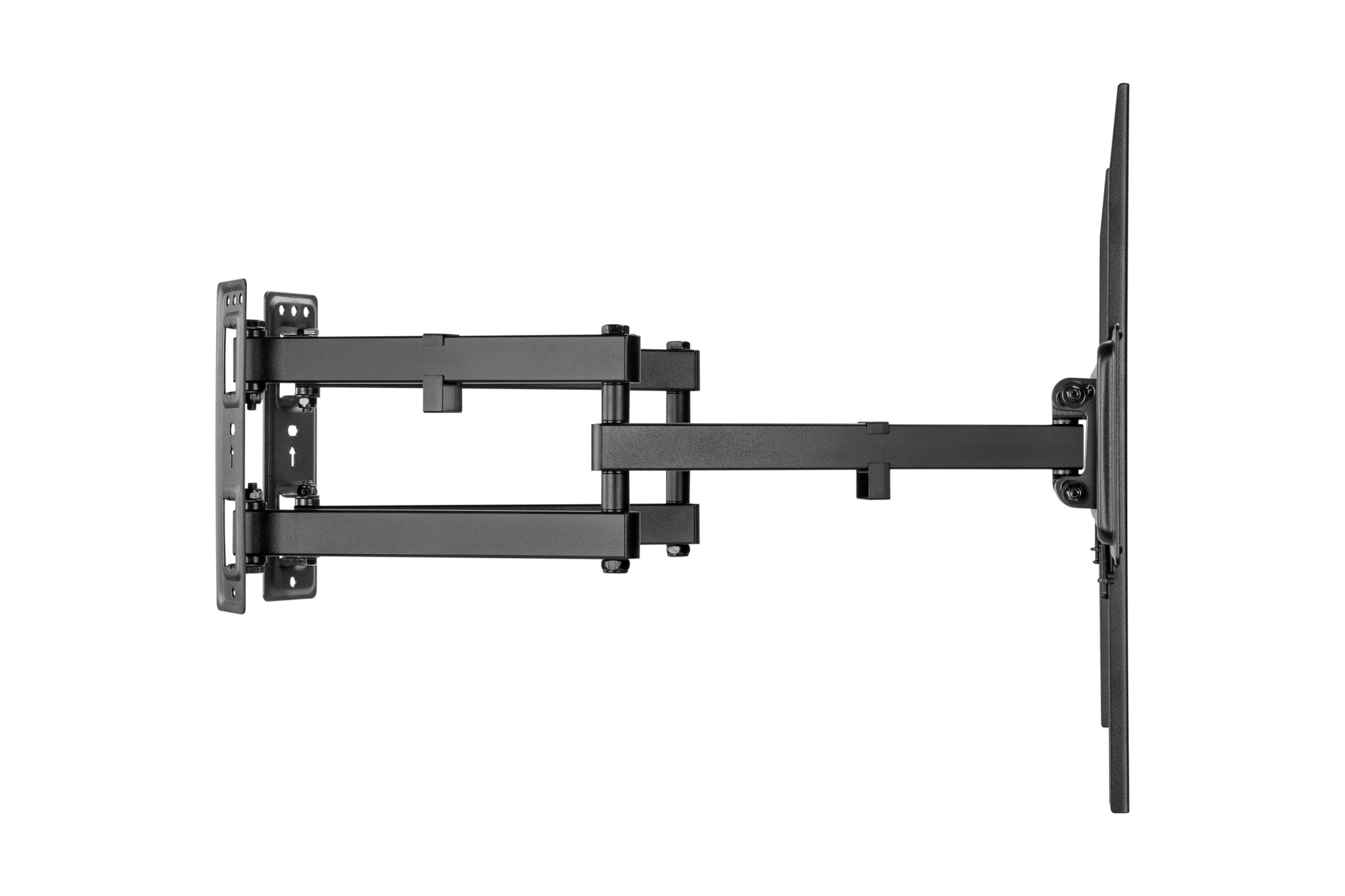 This robust wall mount features swivelling arms that allow for full 45° rotation on either side, a built-in leveller and VESA compatibility.