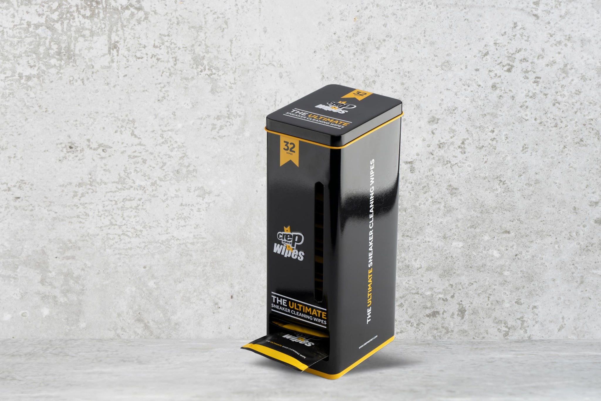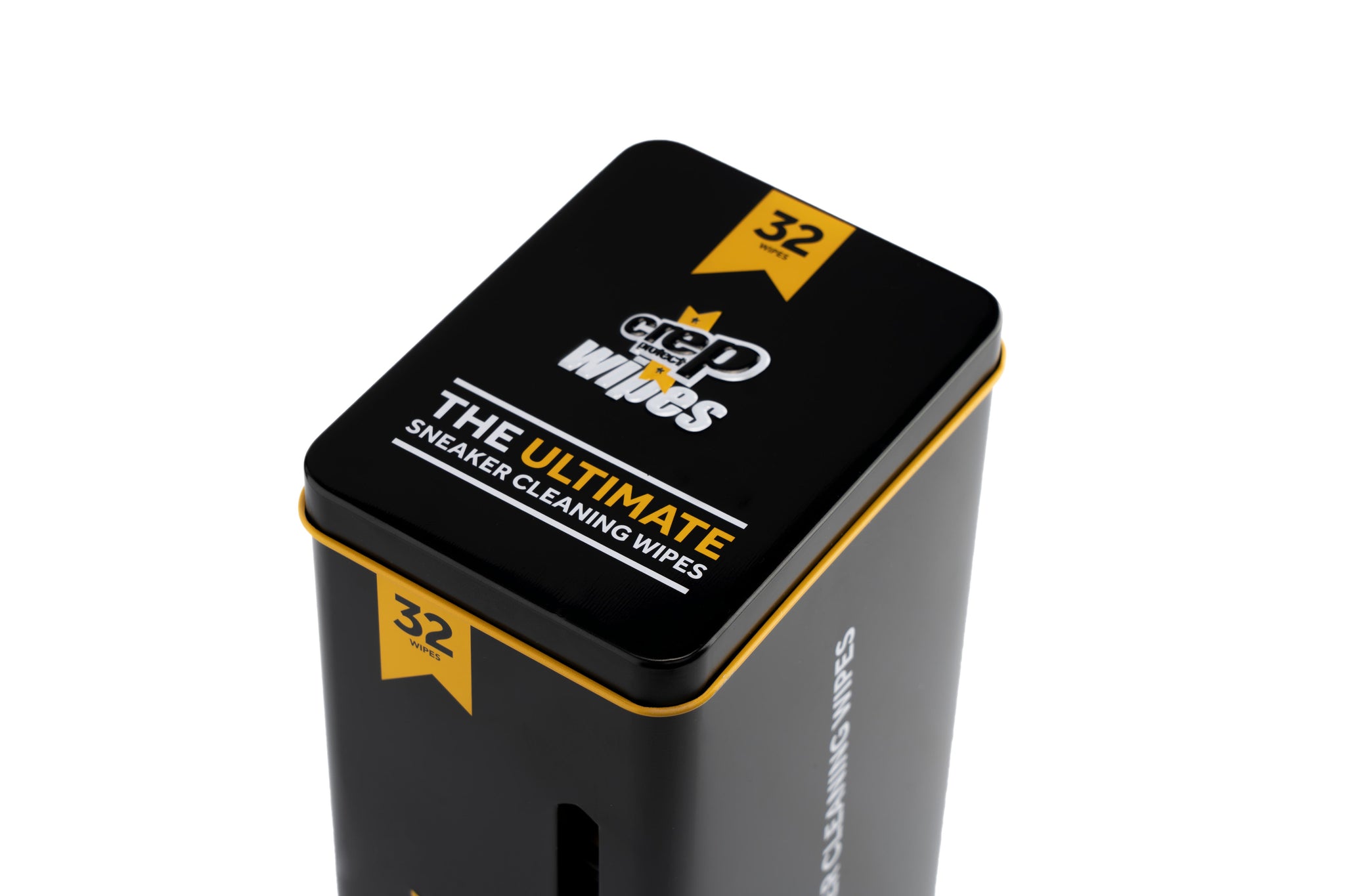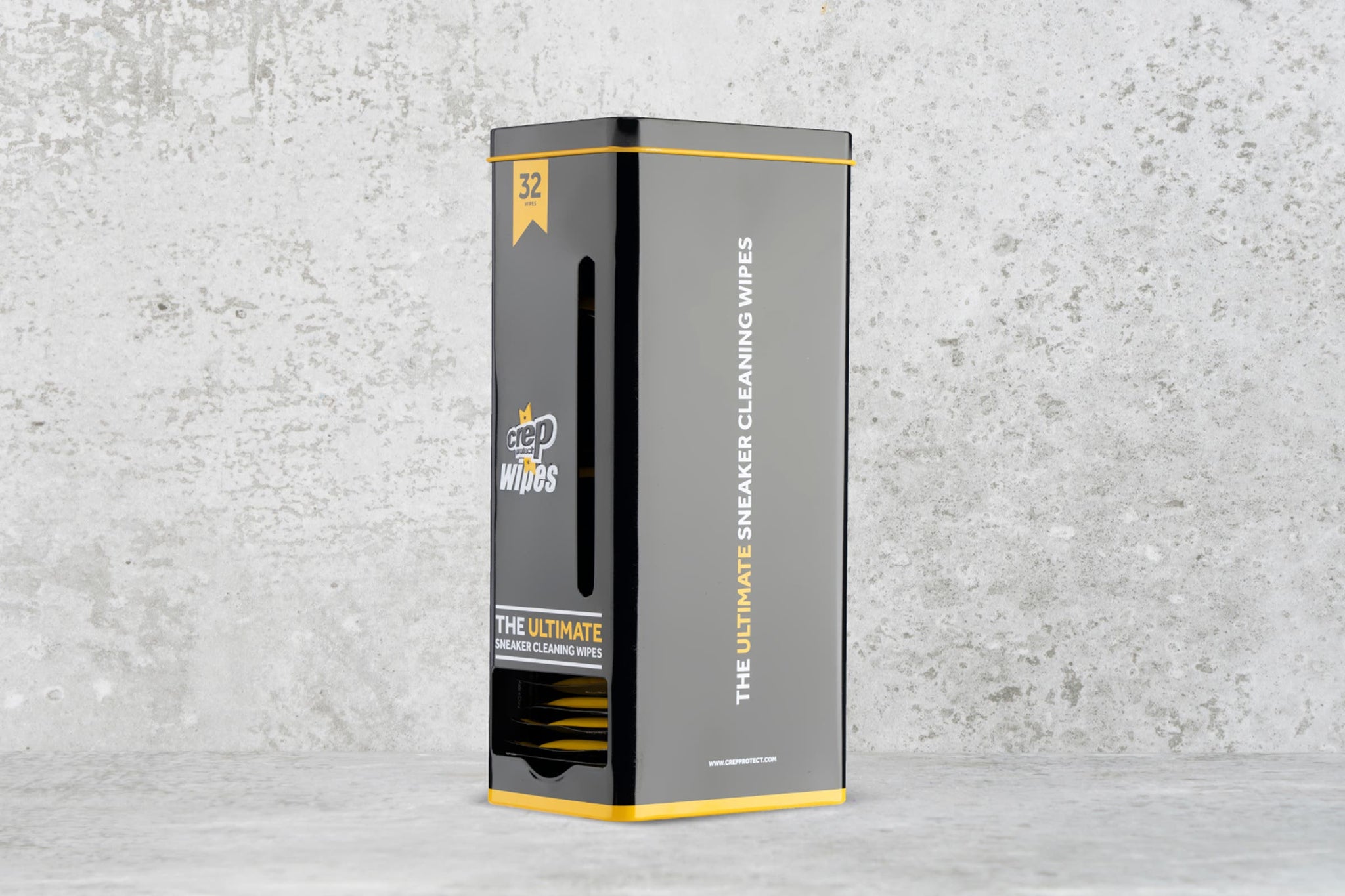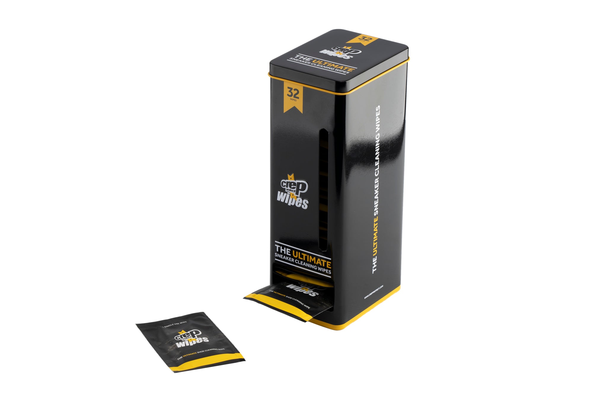 The Crep Protect Tin 32 Wipes are the ultimate sneaker cleaning wipes. The Crep Protect Wipes are double-sided – a rough side for tough stains and a soft side for general cleaning.