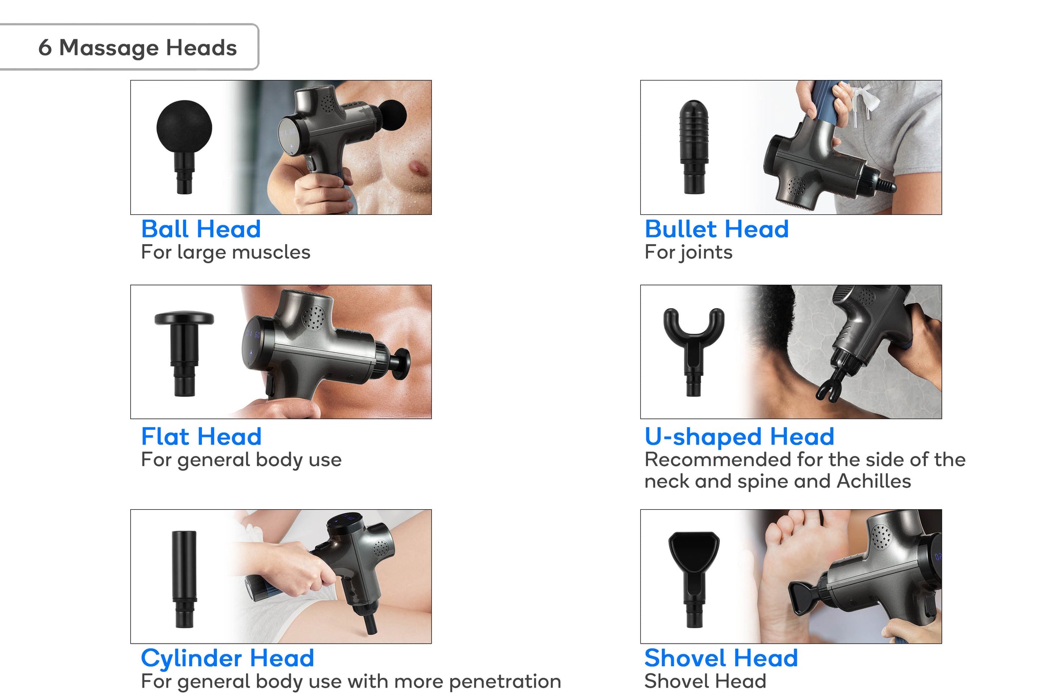 Relax your muscles your way thanks to the six interchangeable massage heads and 20 different massaging modes that let you create your own personalised deep tissue massage that targets your body’s specific needs.