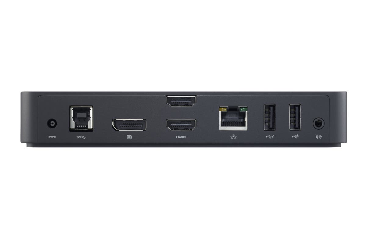 The Dell D3100 UHD 4K USB3.0 Port Replicator Docking Station connects your laptop to up to 3 additional monitors, various external devices and the Internet with a single cable.