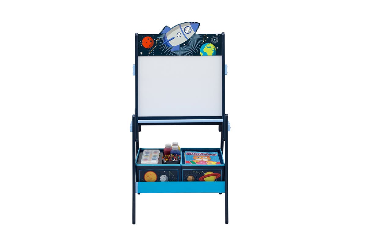 Blast off into the cosmos and reach new frontiers with the Delta Children Space Adventures Wooden Activity Easel. This kids’ easel features a magnetic, dry-erase surface, offering the perfect canvas for their creativity to blossom.