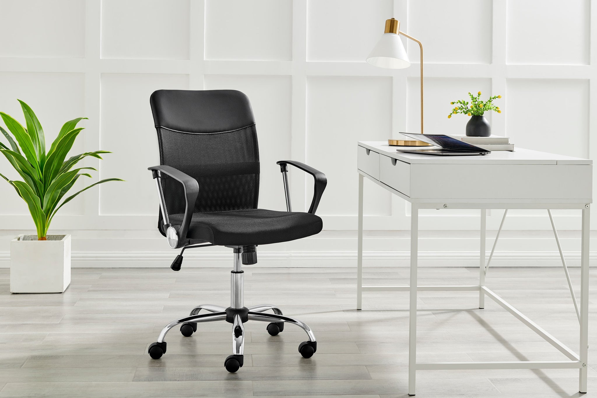 Enjoy a more comfortable workday with the Ergolux Designer Low Back Mesh Office Chair that features a mesh-knit back that allows air to circulate, a padded foam seat and a gas-lift adjuster.