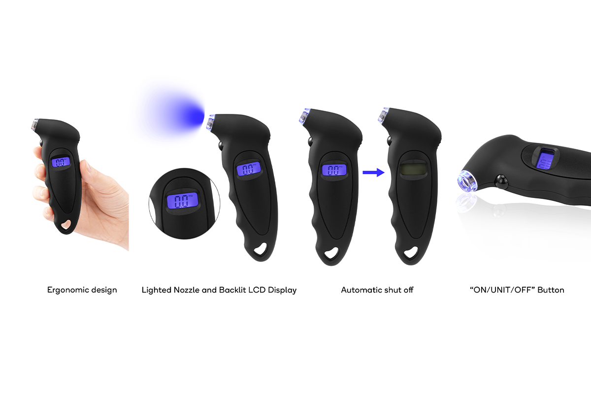 Check your tyres at night thanks to the built-in light that lets you monitor tyre pressure in low light settings so you can get home safely knowing your tyre pressure.