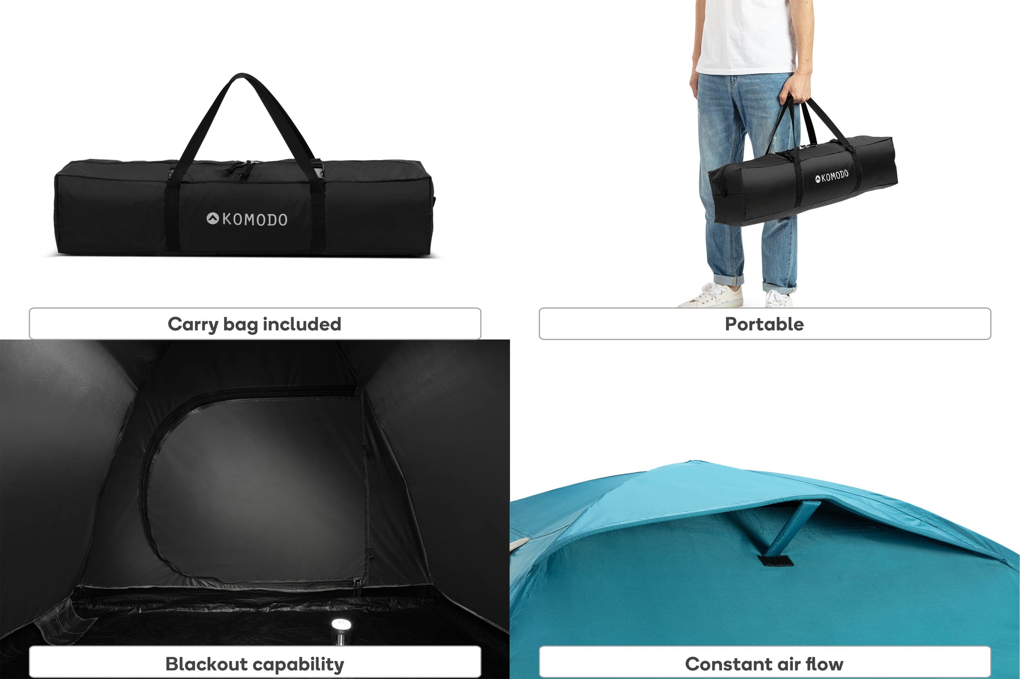 Compact and easily portable, the tent folds down to a small size and packs away in the included carry bag for convenient storage. With the little room that this tent takes up, you’ll never have to leave anything behind ever again.