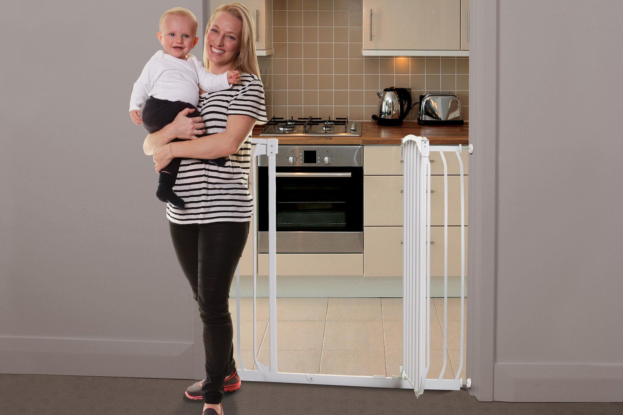 Protect your children from danger around the home with the Dreambaby Chelsea Xtra-Tall & Xtra-Wide Hallway Auto-Close Gate. They are not only extra tall at 1m (39.4”), but extra wide too. They fit openings of size 97-108cm (38.1-42.5”). They are perfect for large openings around the home, making it easy than ever to protect your children from danger. These gates are perfect for hallways, doorways and stairways, preventing your children from entering potentially dangerous areas of the home.