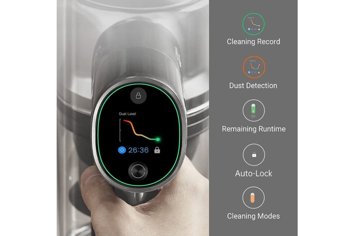 Dust level is seen on the screen, along with the remaining battery, cleaning reports, error prompts, etc. The switch trigger also allows you to turn on the continuous working mode.