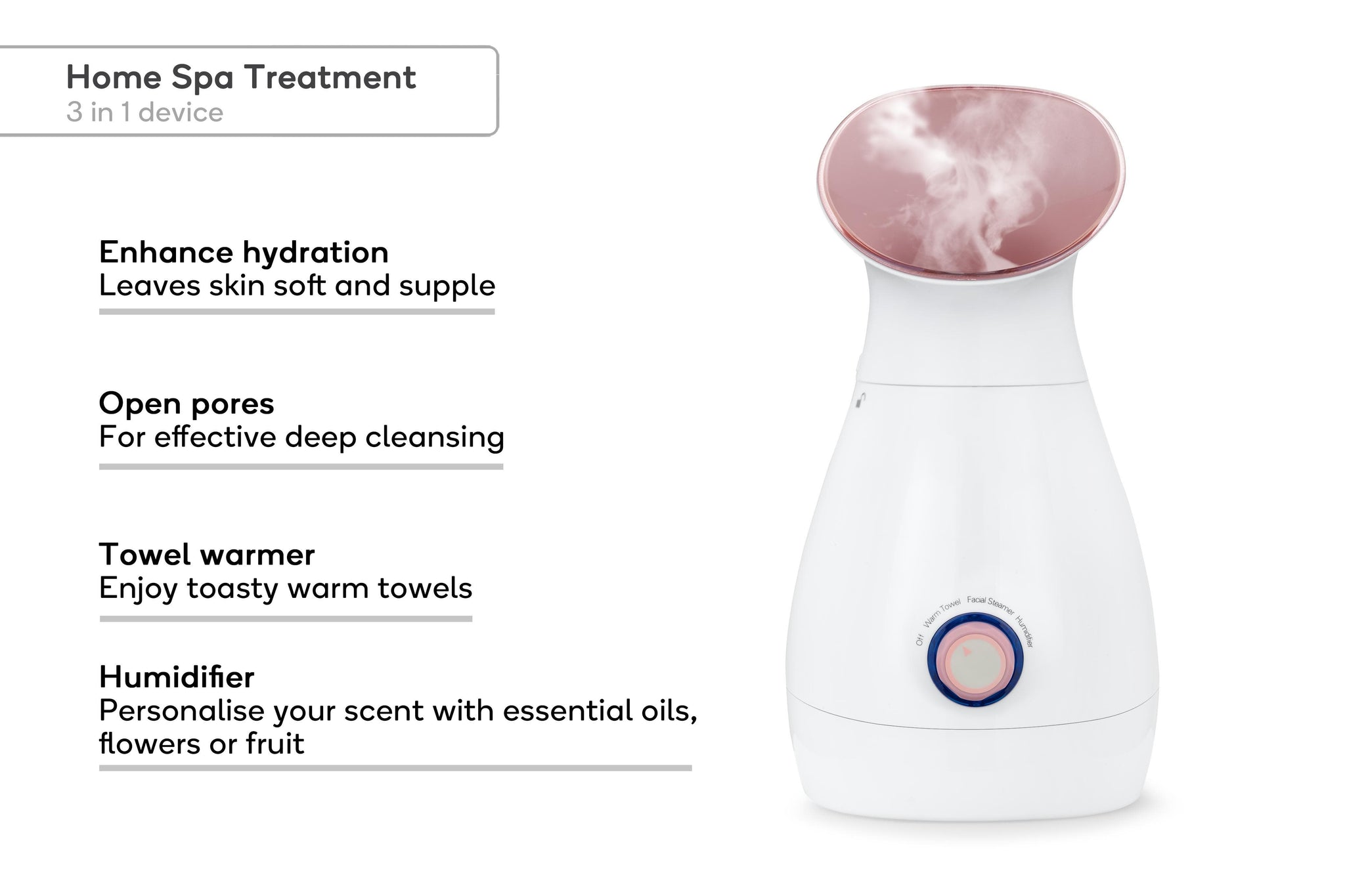 - 3-in-1 Facial steamer, towel warmer and humidifier