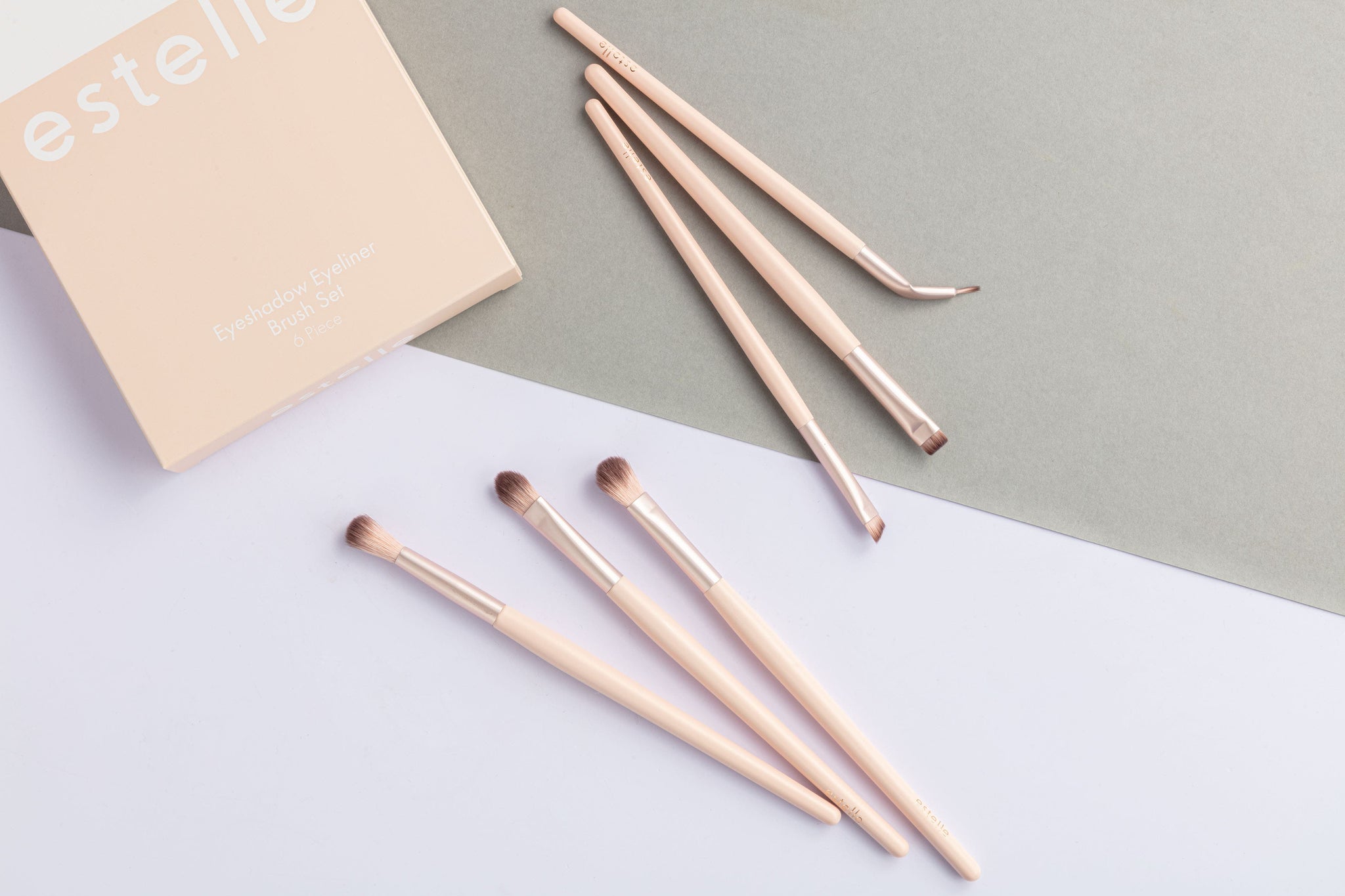 From fine detail to broad strokes, the variety of brush types in the Estelle 6 Piece Eyeshadow Eyeliner Brush Set lets you apply the perfect eye makeup.