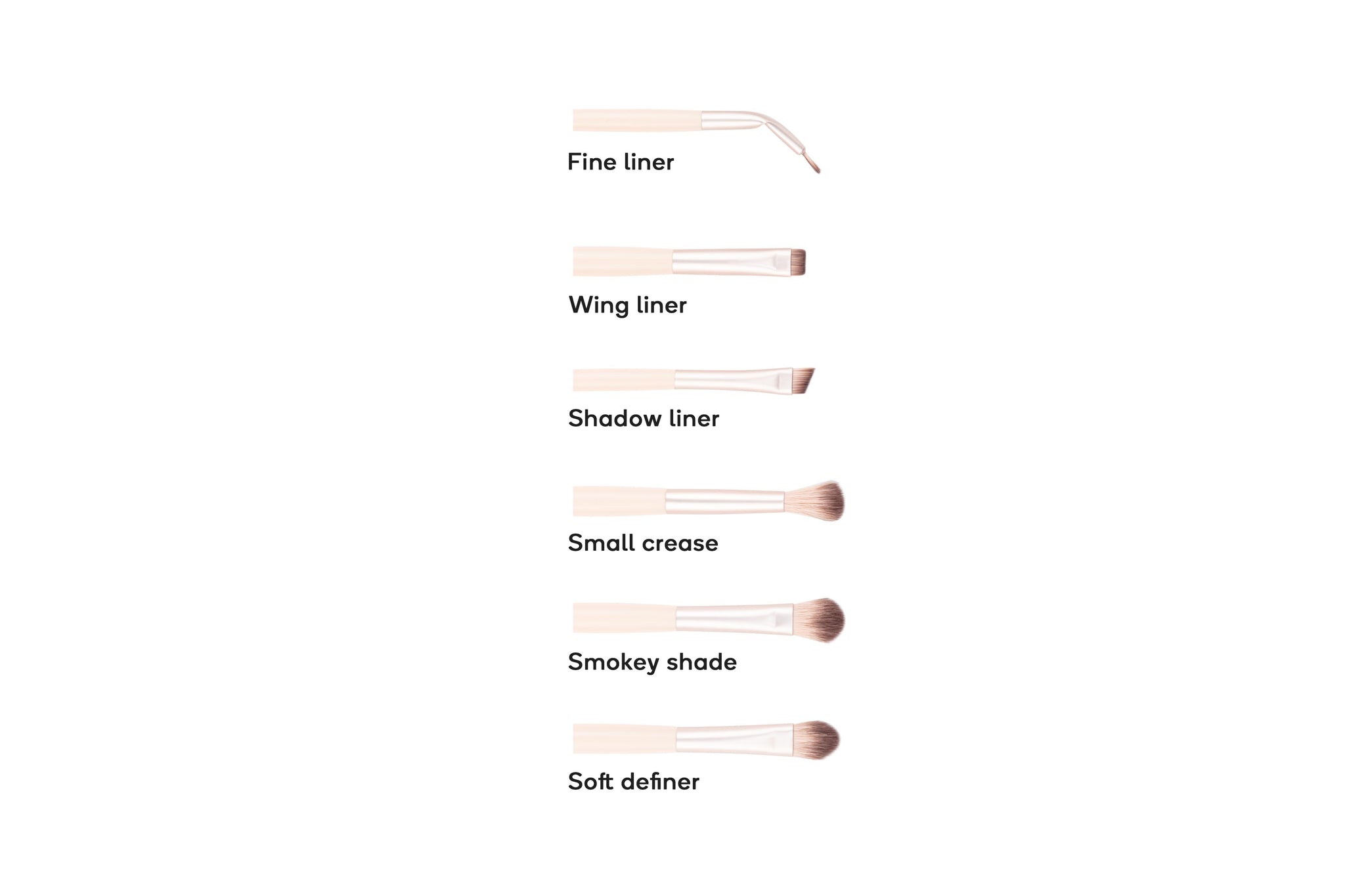 - Brushes included: 1 x soft definer, 1 x smokey shade, 1 x small crease, 1 x shadow liner, 1 x wing liner, 1 x fine liner