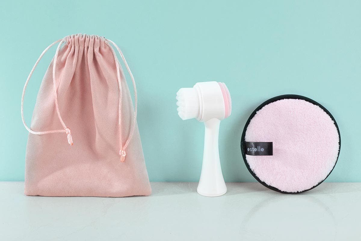 The two-sided cleansing brush and facial puff can be popped into the drawstring bag for simple storage and easy transportation wherever you go.