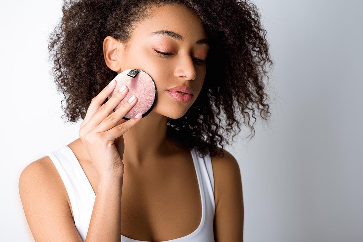 Before washing your face, use the facial puff alongside a cleansing oil or balm to remove any makeup. Afterwards, apply a facial cleanser to your face and use the brush head to deeply cleanse the forehead, jawline and cheeks in upward circular motions or use the silicone brush head to gently exfoliate the skin.
