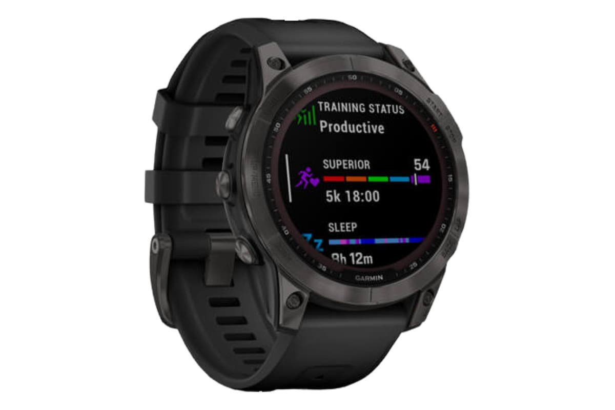 NNEKG fēnix® 7 Sapphire Solar Carbon Gray DLC Titanium with Black Band Multisport GPS Watch