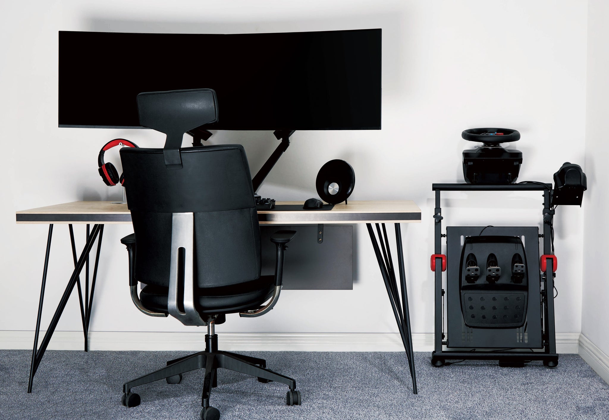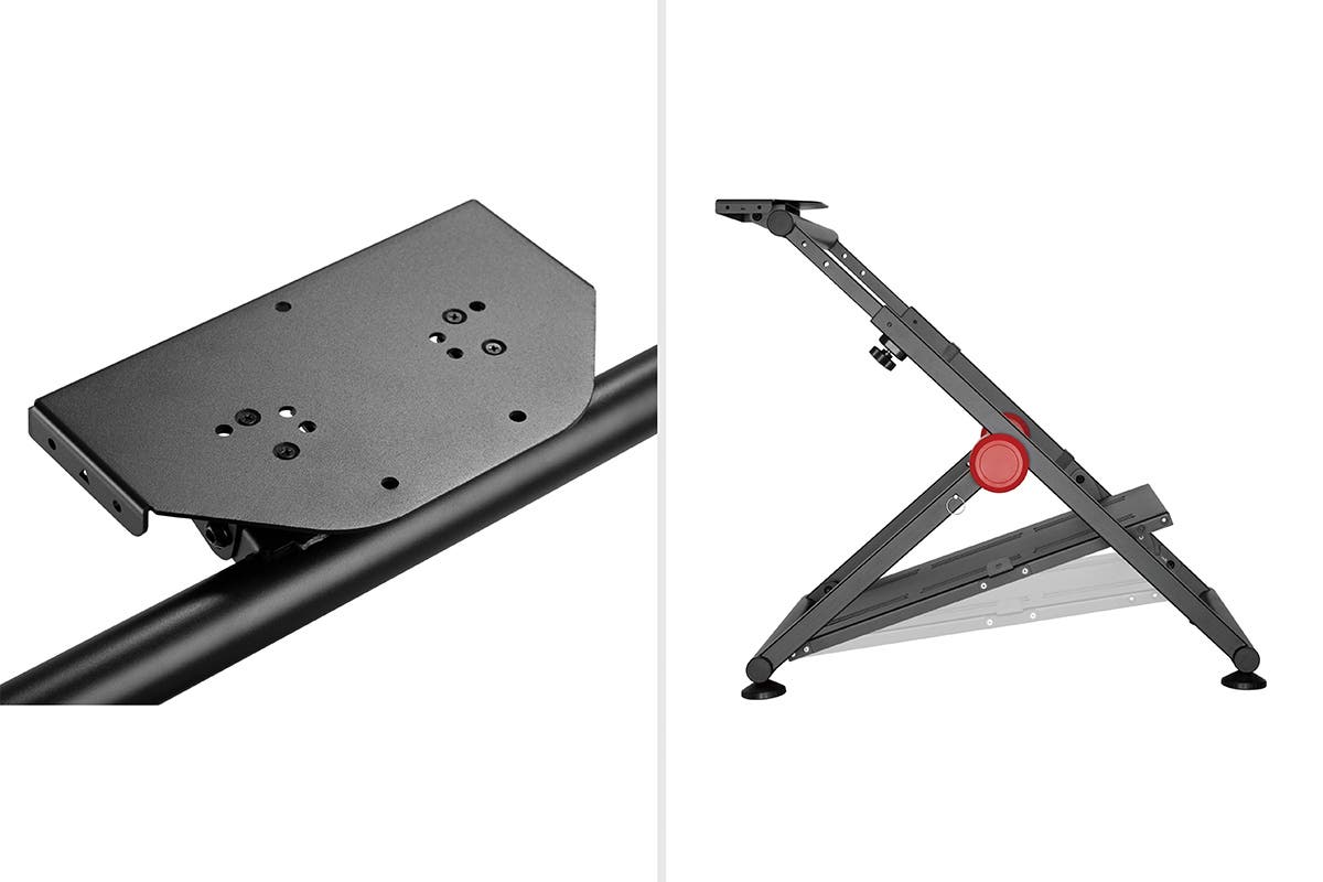 Experience the full-throttle adrenaline of home racing with a stand that lets you mount a steering wheel and pedals, and folds away for compact and easy storage.