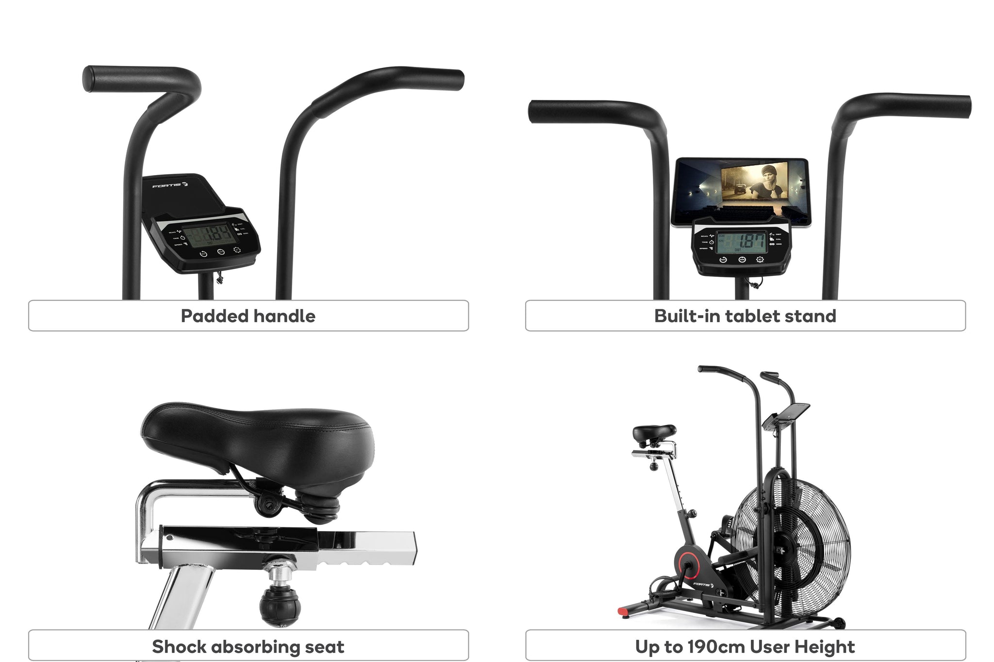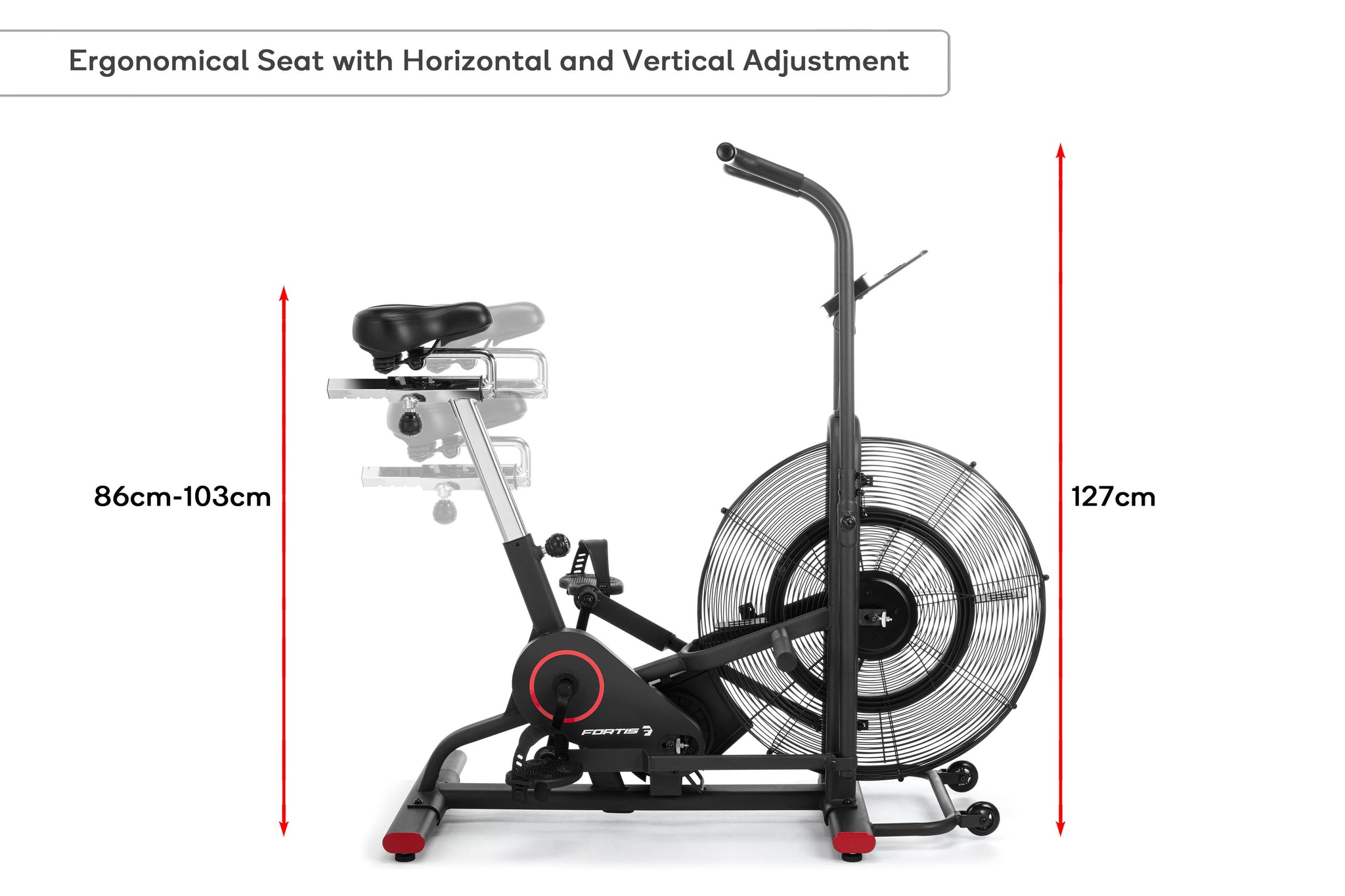 Shred calories, get fit and build endurance with the Fortis 27” Fan Resistance Exercise Air Bike that delivers a linear resistance to your input, and adjusts with ease to your fitness level and desired workout.