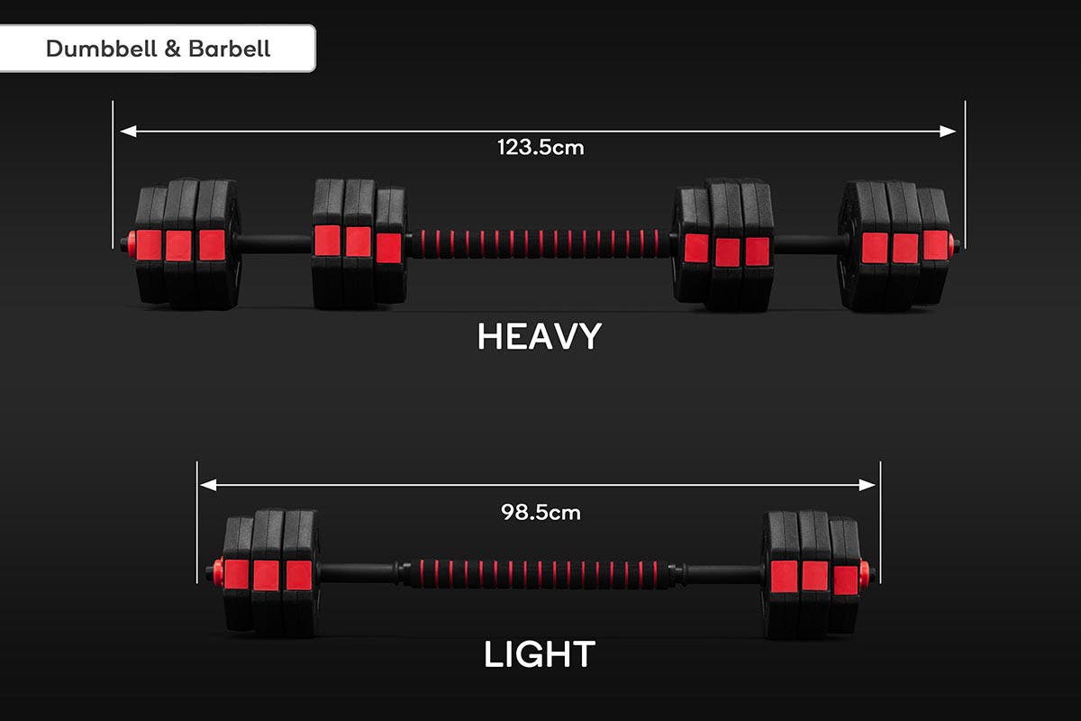 See your body change when you use the Fortis Adjustable Dumbbell & Barbell Set to undertake a wide range of workouts in the comfort of your home.