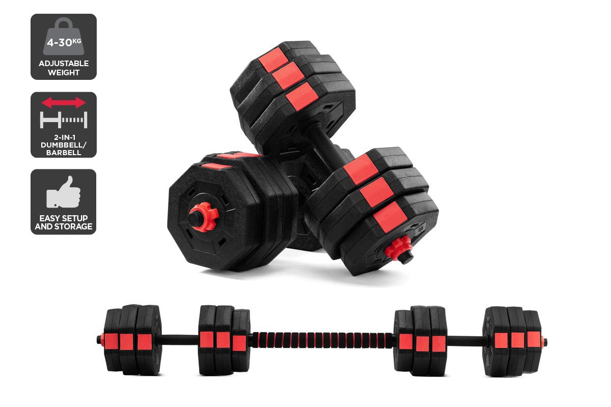 NNEKG Fortis 30kg Adjustable Weights Dumbbell & Barbell Set