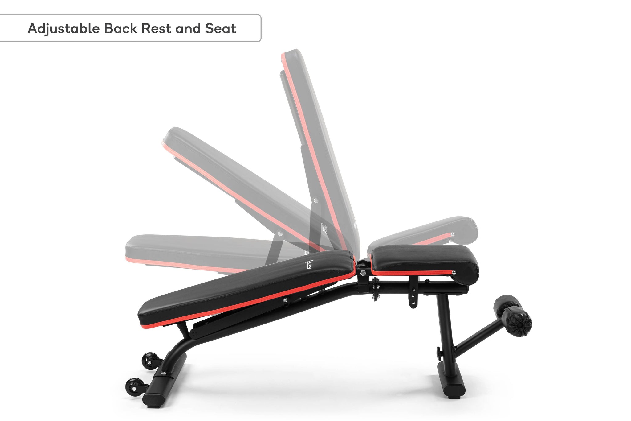 With an adjustable seat, leg bar, and bench that can be moved to different incline, flat, or decline angles, this weight bench allows you to get through sets of multiple exercises quickly, guaranteeing an efficient and productive workout.