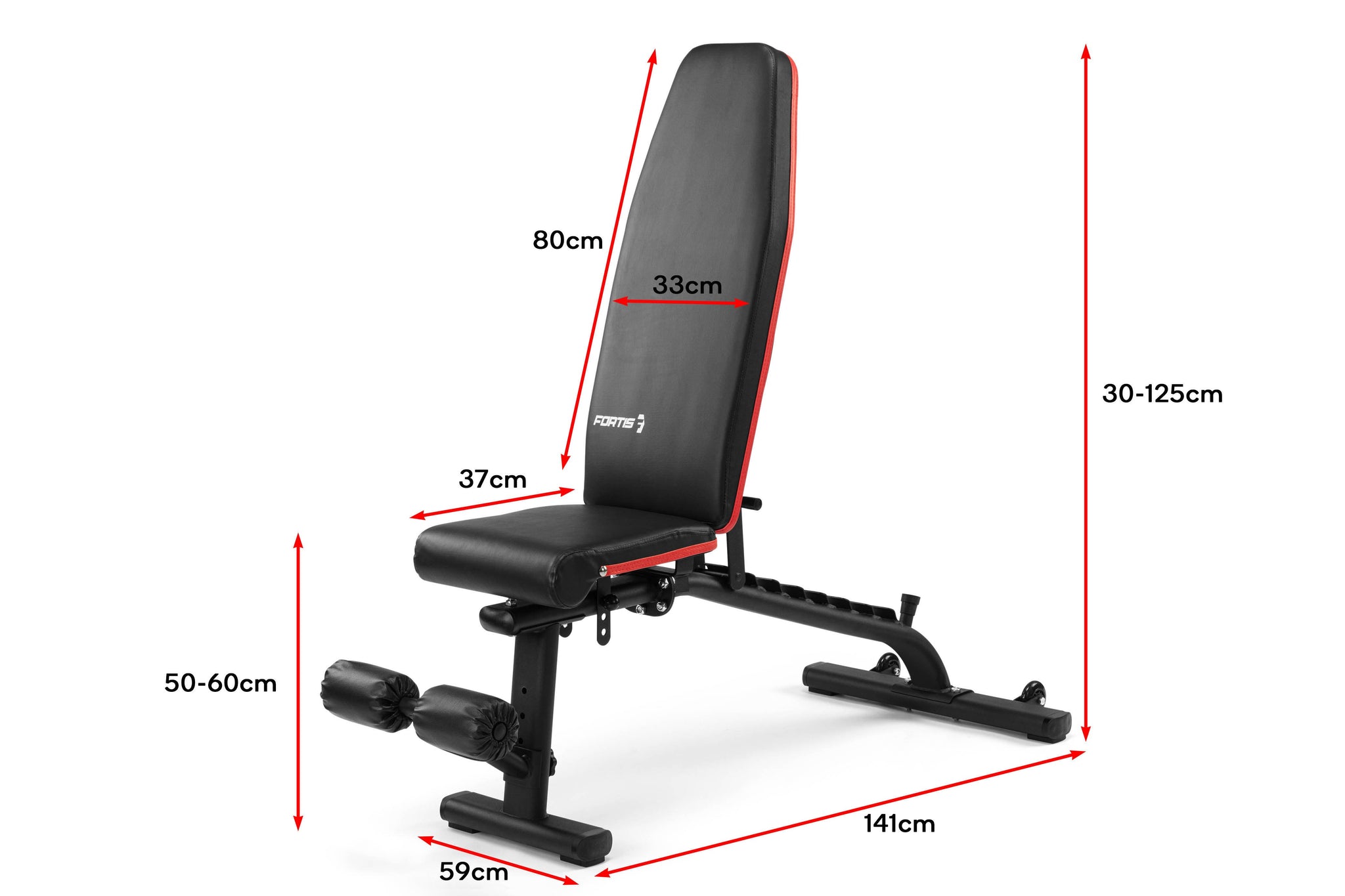 Get through your sets in comfort thanks to the padded upholstery, supportive footrests, and stable design of the Fortis Heavy Duty Adjustable FID Weight Bench.