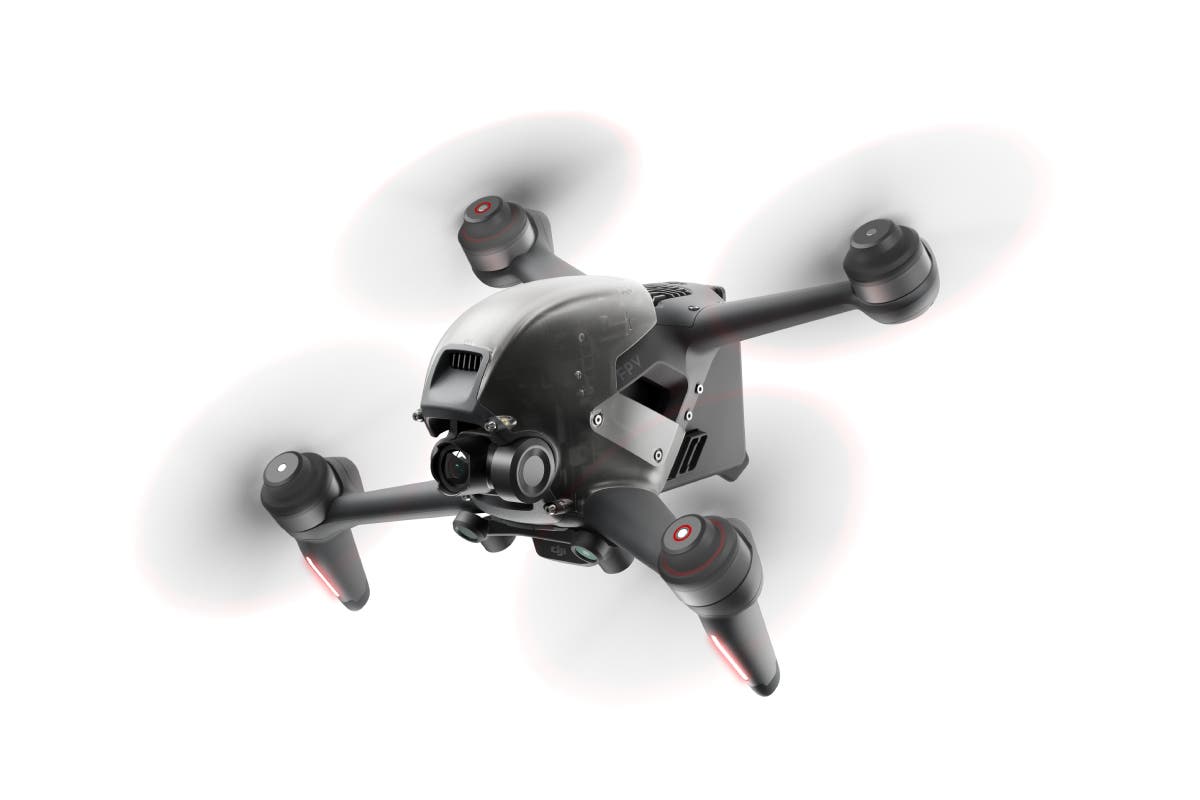 Sleek and aerodynamic, the DJI FPV aircraft delivers powerful propulsion, battery life and wind resistance, making this system as capable as it is visually stunning. Sporting front LEDs and aircraft arm lights with customisable-colour, DJI FPV allows pilots to make their aircraft as unique as they are.
