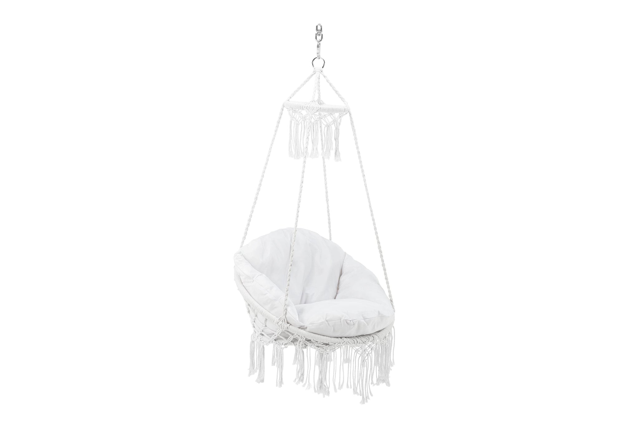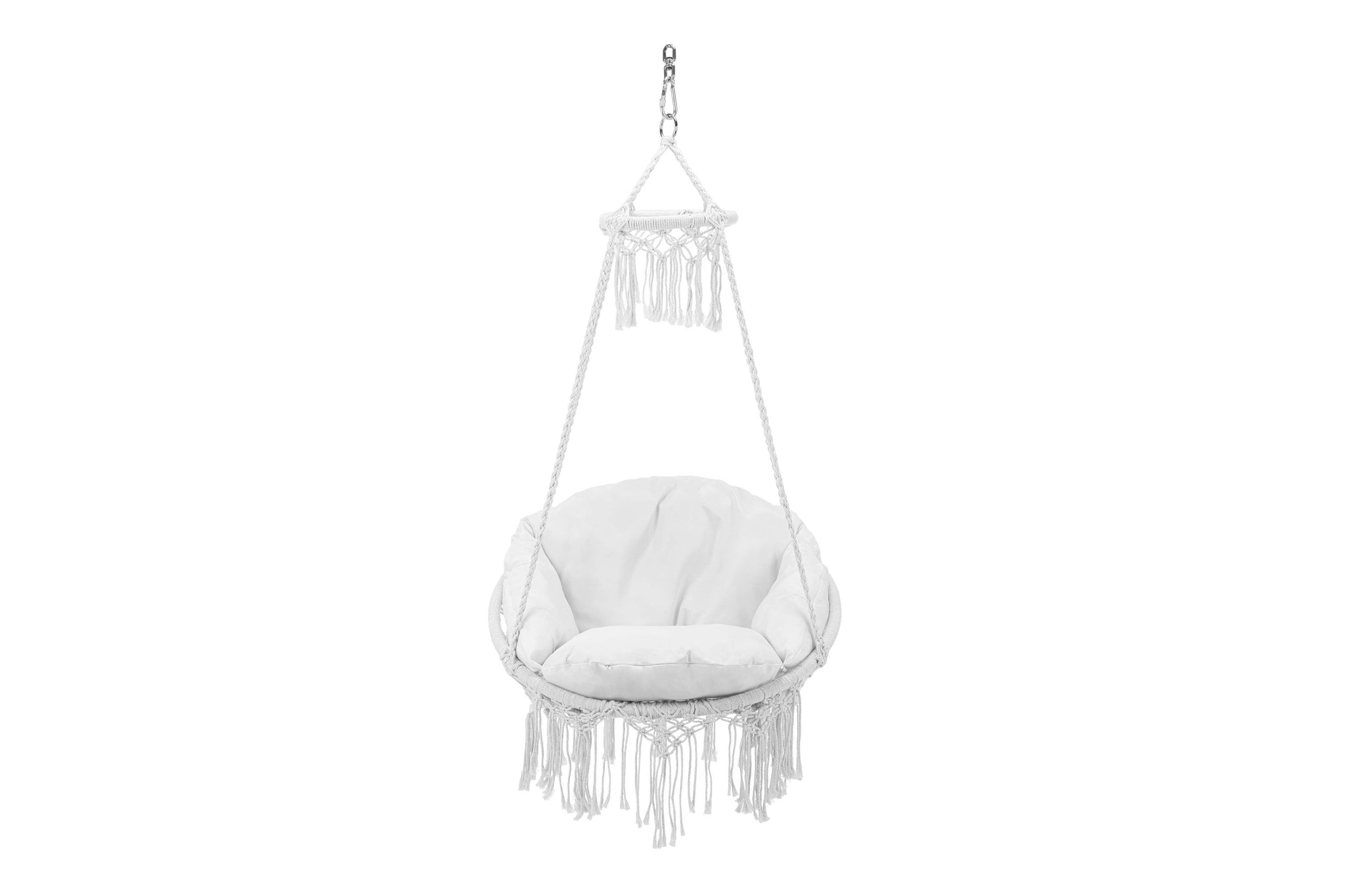 Hang out in the garden or out on the patio with this boho-style hammock chair that features a fringed design with soft cushioning and strong ropes so that you can stay safe and relaxed while you sit.
