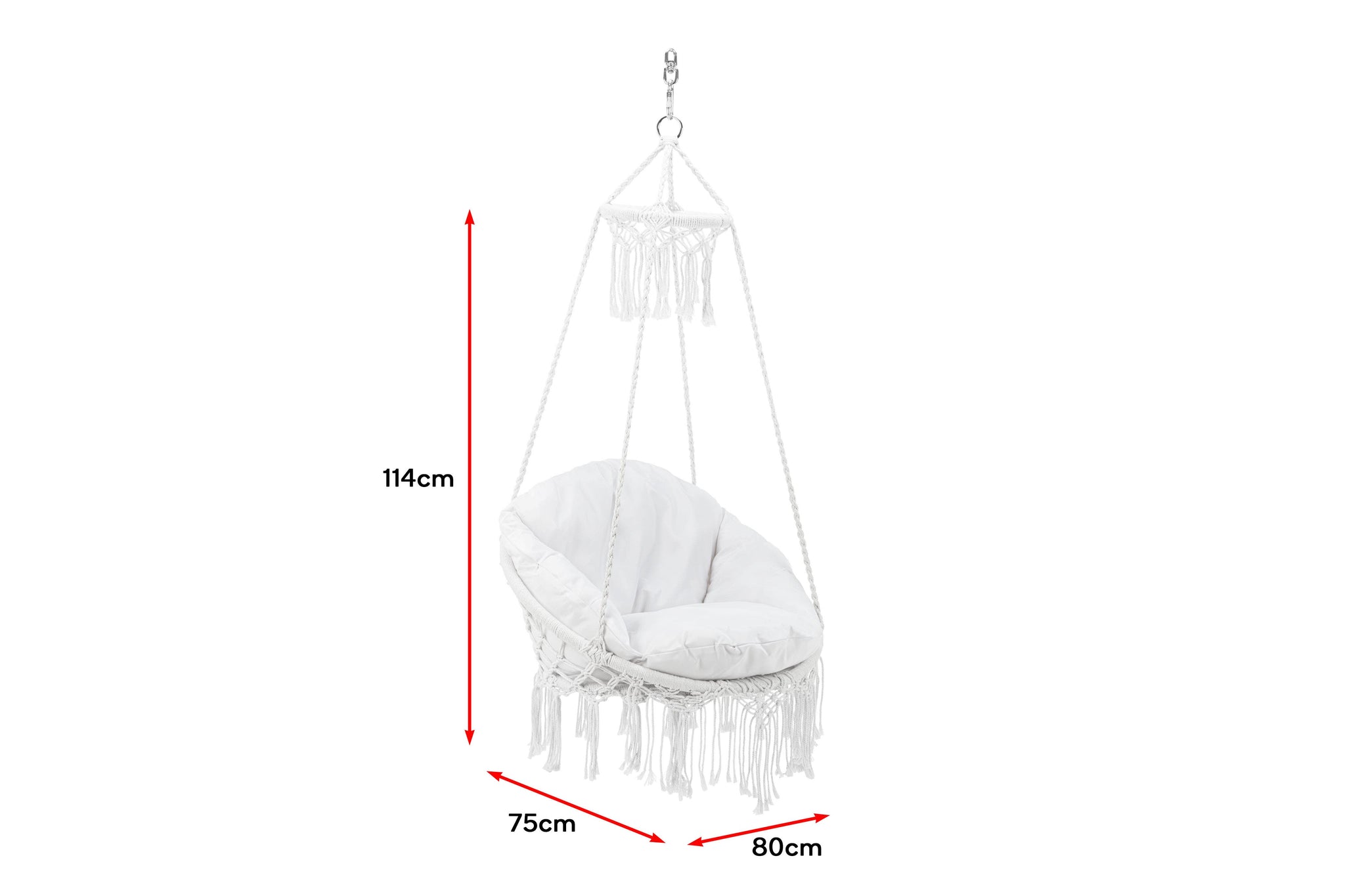 Kick back and wind down in the Fringed Macrame Hammock Chair that boasts comfortable cushioning that makes for a cosy indoor or outdoor retreat.