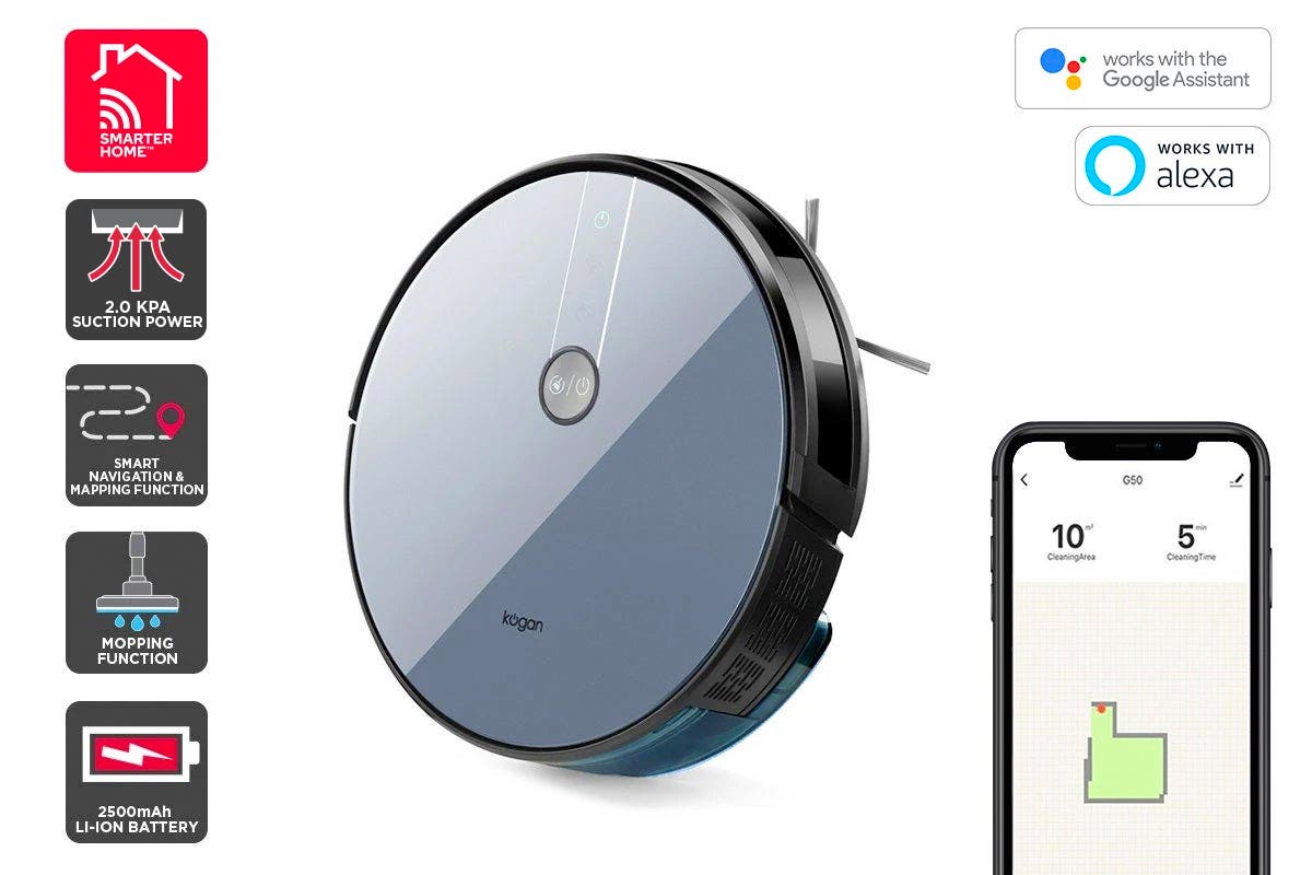 Don’t spend a fortune on separate vacuums and mops with the Kogan SmarterHome™ G50 Robot Vacuum Cleaner and Mop, helping you to get dust-free floors and sparkling-clean tiles, all from your mobile.