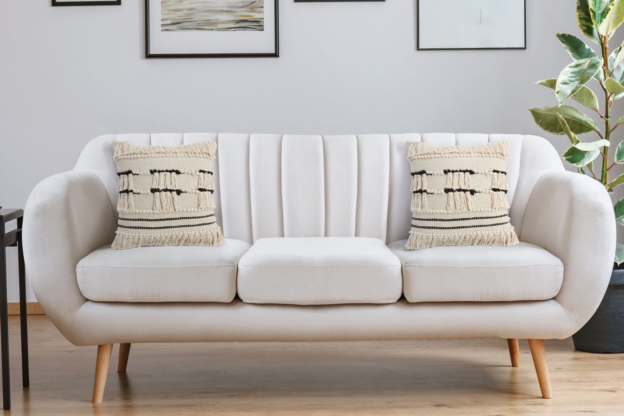 The frilled tassels and the weaved pattern along with the warm colour add a bright and cosy feel to any space, elevating your home with a relaxed feel.