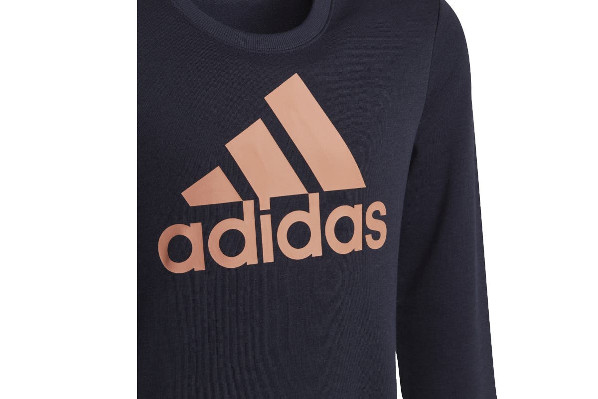 The Adidas Girls’ Core Sport Inspired Big Logo Sweatshirt is made of soft and comfortable cotton blend fabric. Its moisture absorbing AEROREADY technology keeps you dry and comfortable.
