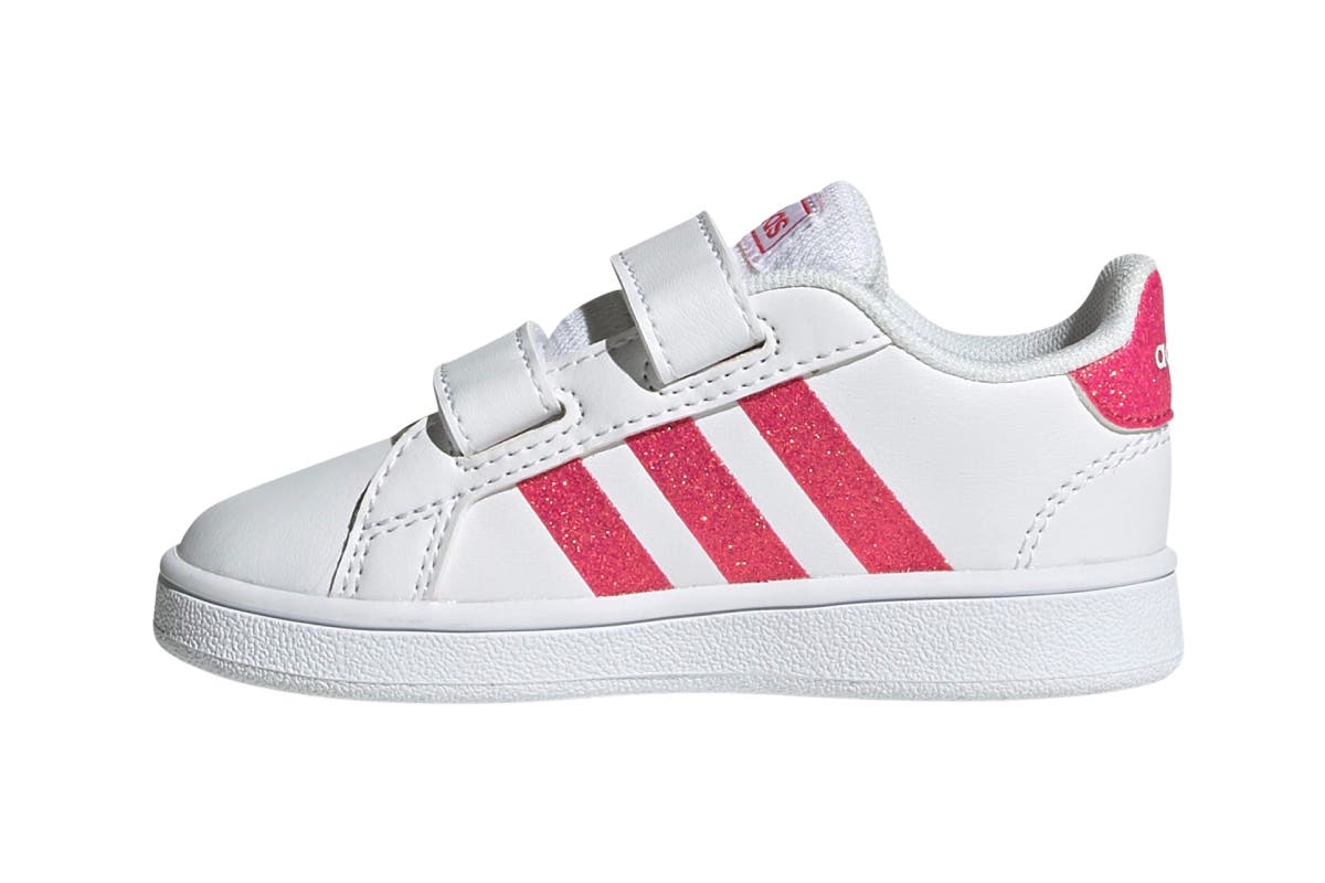 They’ll show their Adidas spirit with retro style. Adidas Girls Grand Court Shoes feature glitter 3-Stripes and a cushioned sockliner that gives small feet ultra-soft comfort. An adjustable strap closure keeps them feeling snug and locked in.