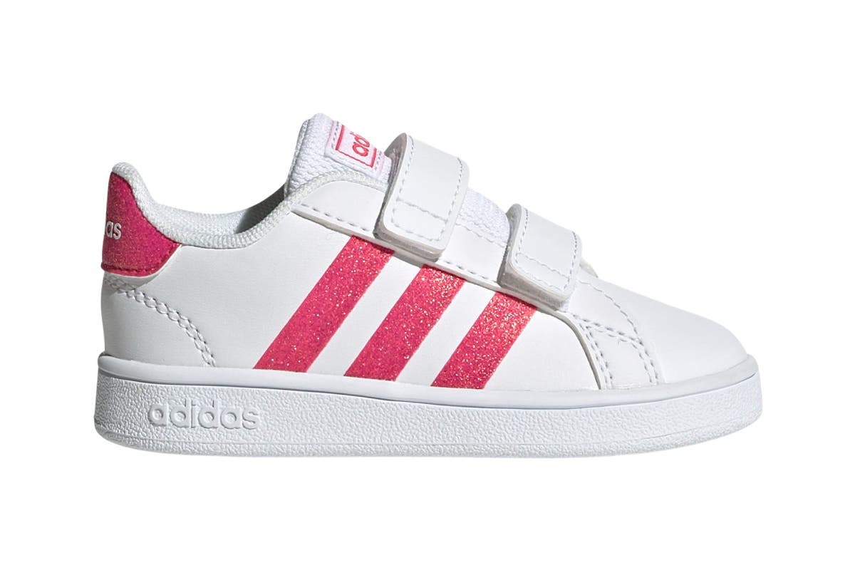 They’ll show their Adidas spirit with retro style. Adidas Girls Grand Court Shoes feature glitter 3-Stripes and a cushioned sockliner that gives small feet ultra-soft comfort. An adjustable strap closure keeps them feeling snug and locked in.