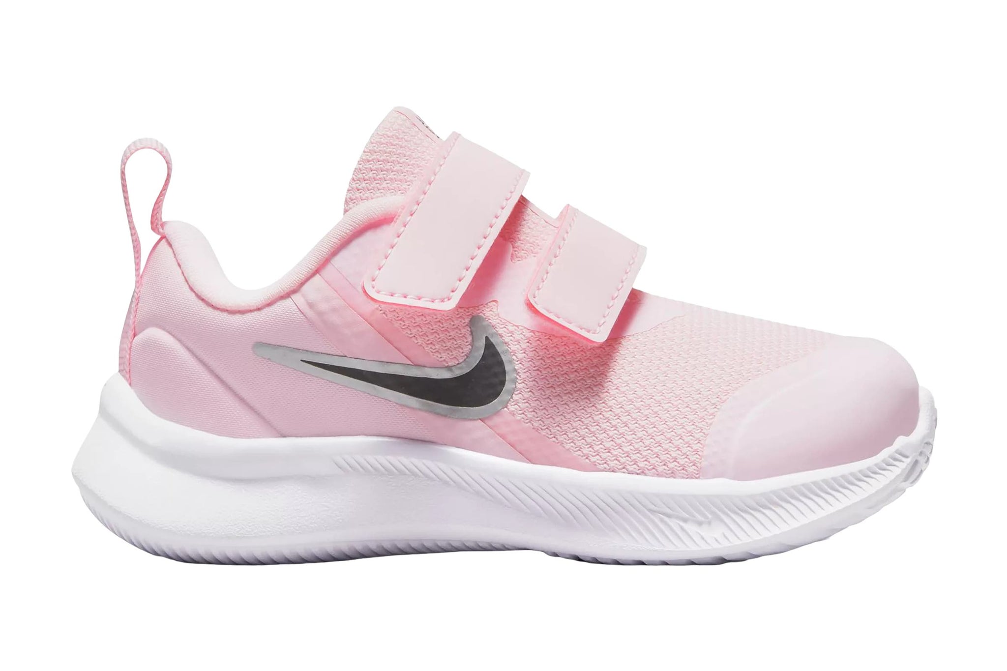 Nike Girls’ Star Runner 3 TDV Running Shoes have 2 straps for easy take off, plus super soft foam and lots of flexibility to rocket up the comfort. They’re made with at least 20% recycled material.