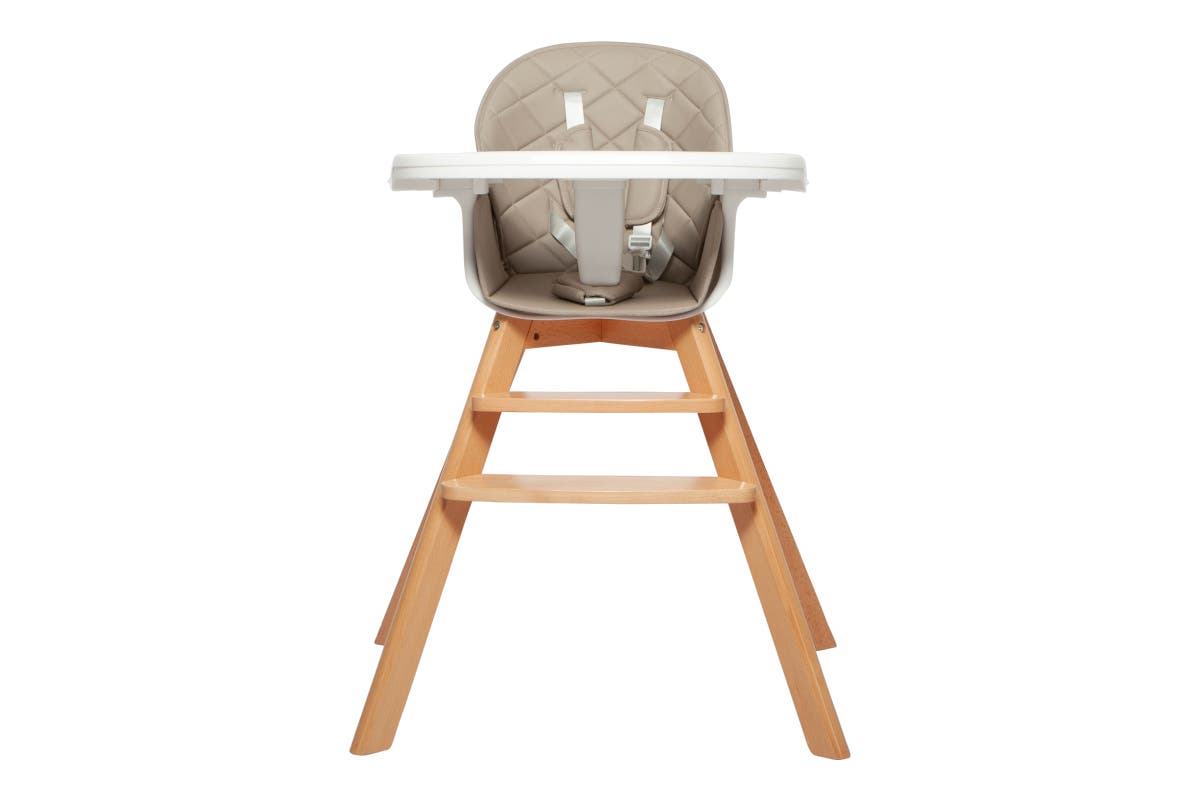 With the Grotime Birch High/Low Chair, featuring a strong timber frame, 2 position height adjustments and a 5 point adjustable safety harness, you will be able to have the perfect meal time with your little one.