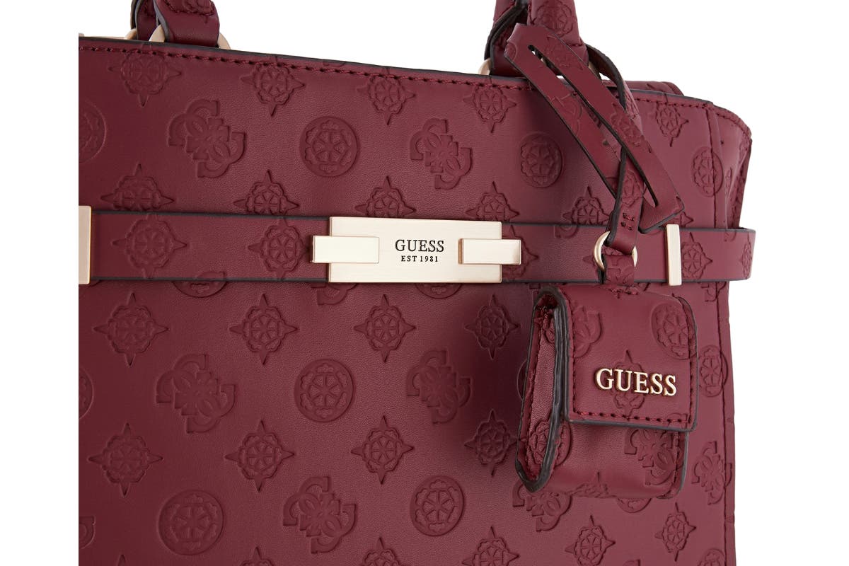 With its embossed Guess logo design, the Guess BEA Society Satchel handbag is a structured mid-sized bag which balances storage space with style.