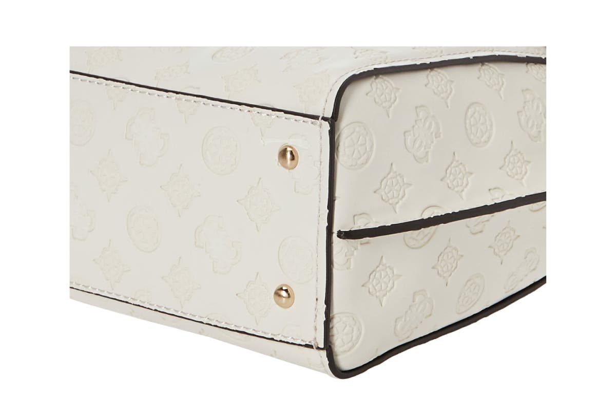 With its embossed Guess logo design, the Guess BEA Society Satchel handbag is a structured mid-sized bag which balances storage space with style.