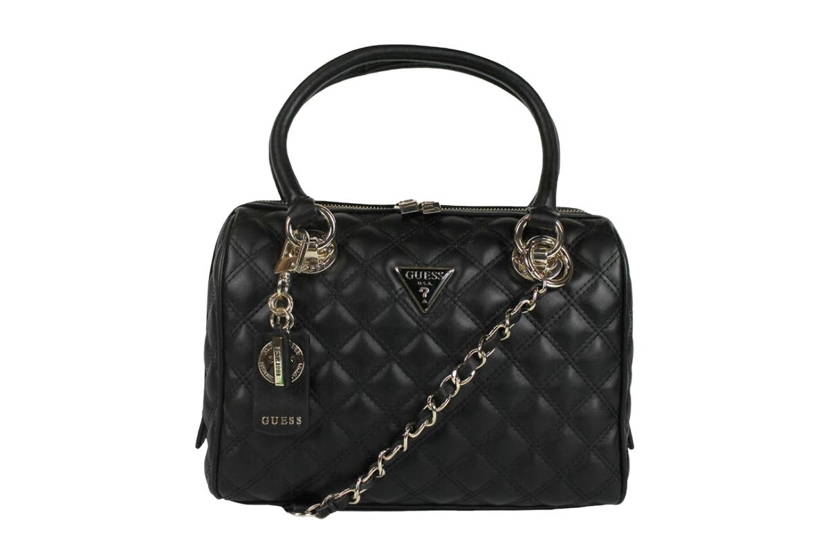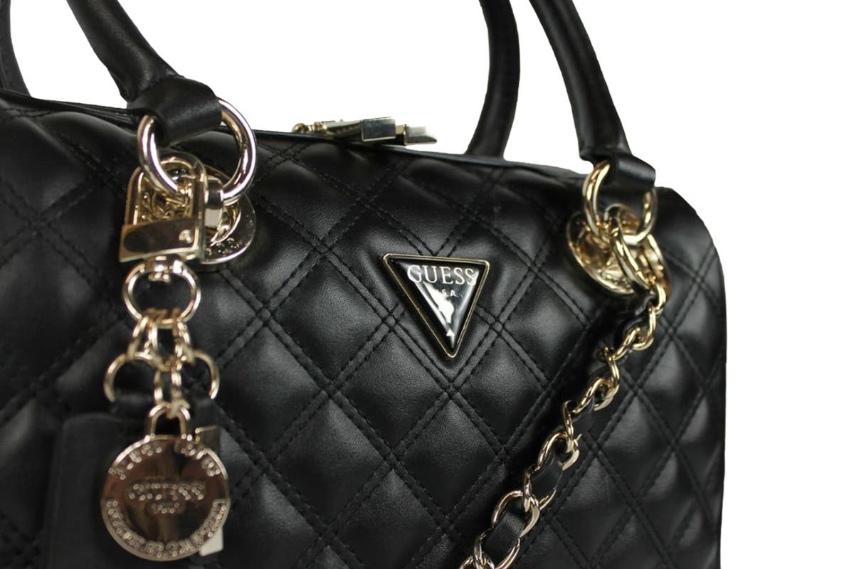 The Guess Cessily Box Satchel Bag elevates its chic look with a luxurious quilted finish and metallic hardware. Made of quilted smooth polyurethane, this bag is sturdy and long-lasting.